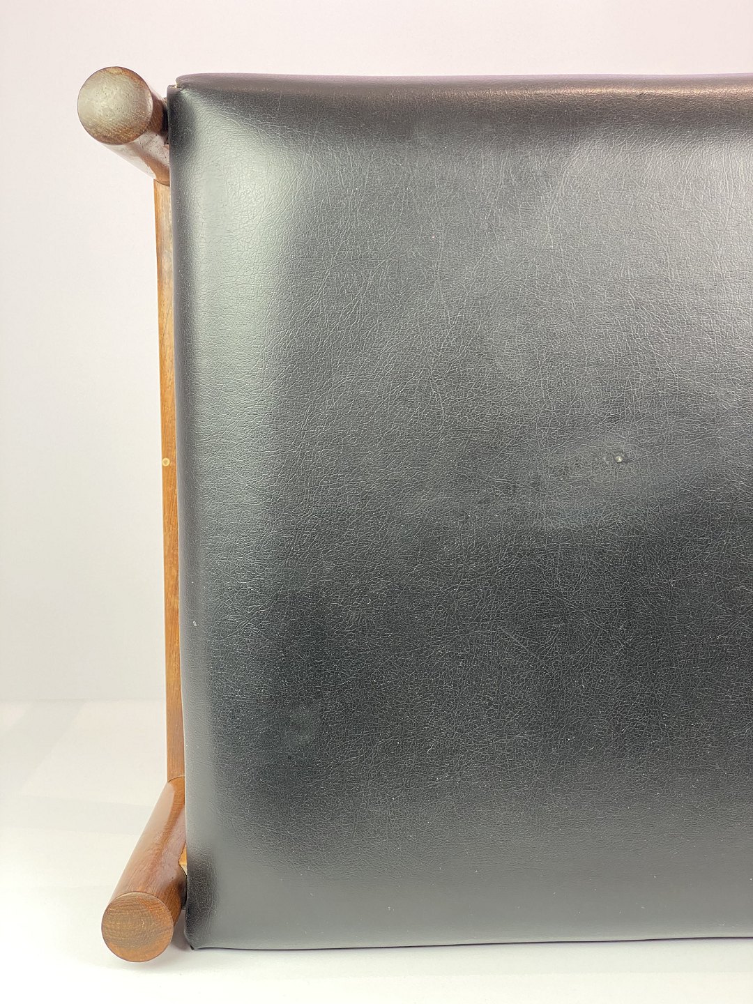 SoldStool of black leather and rosewood, of Danish design manufactured by Spøstrup Furniture in the 1960s. The stool is in great vintage condition.