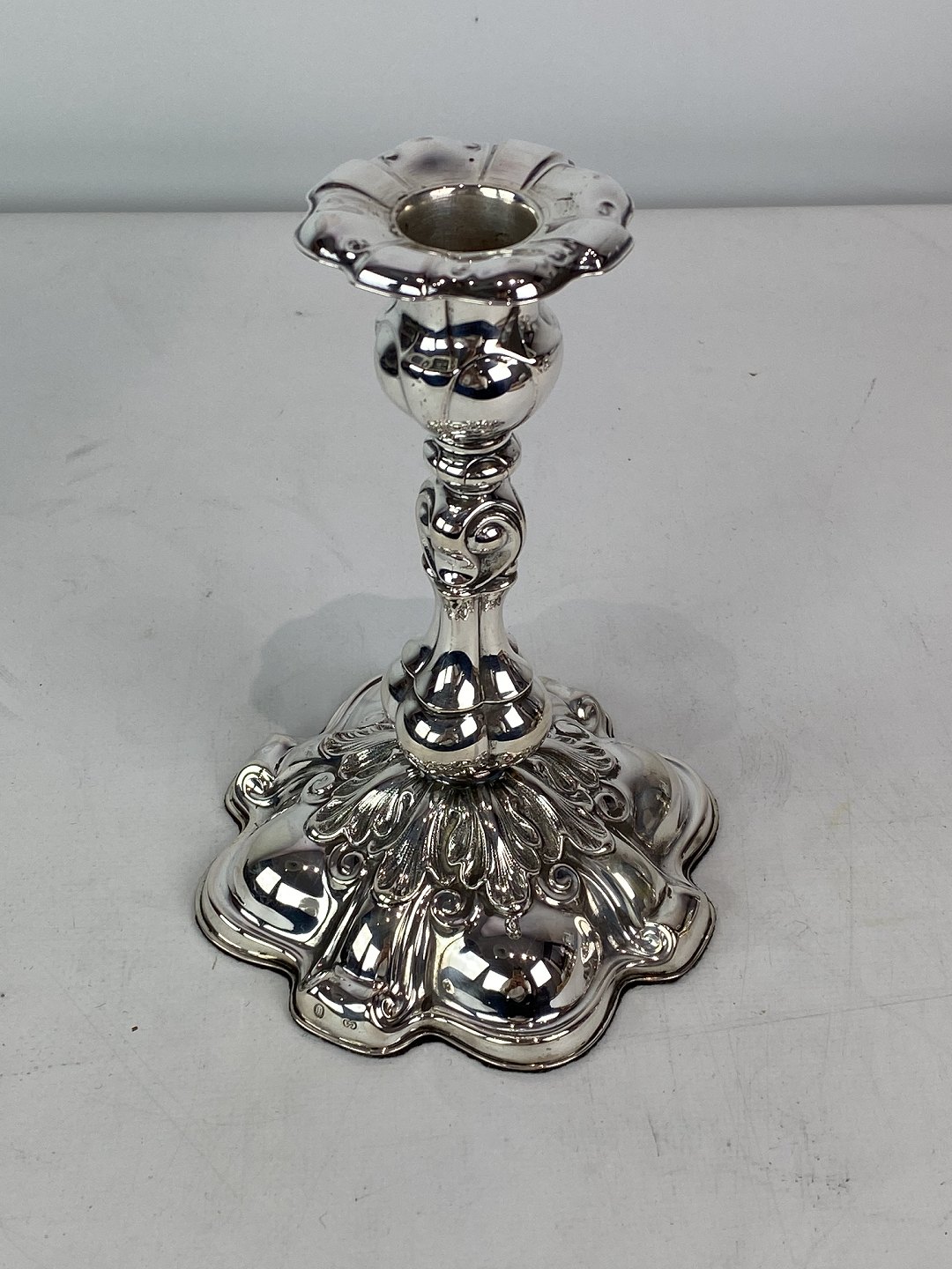 Set of two rococo candlesticks of hallmarked silver, in great antique condition from the 1920s.