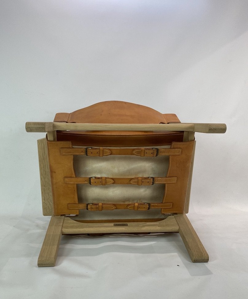 simple beauty. The sturdy oak construction gives the chair excellent durability, while the cognac colored leather, which develops a natural patina over time, adds a warm and inviting feel.