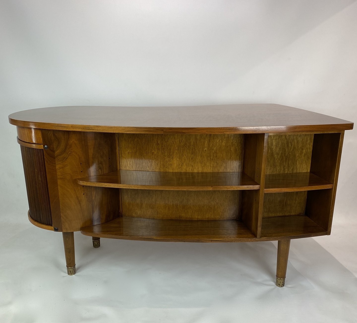 Kai Kristiansen was known for his talent for combining aesthetics with functionality, and this desk is an excellent example of this. The built-in bar cabinet and shutter doors add extra storage space while creating a clean and streamlined look.