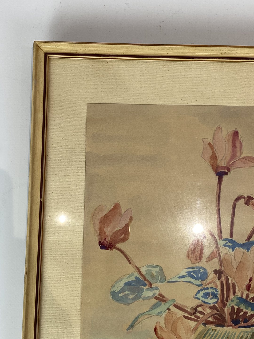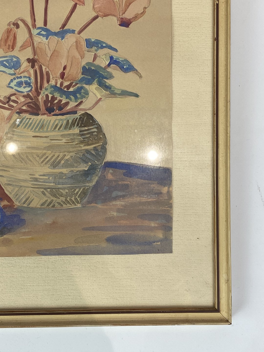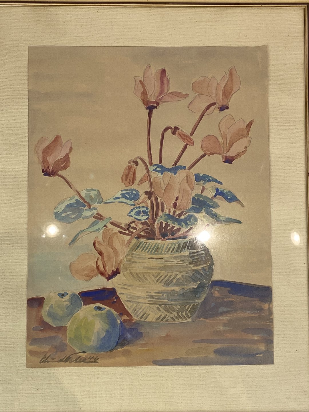 Water color painting with floral motif and gilded frame, from around the 1940s.