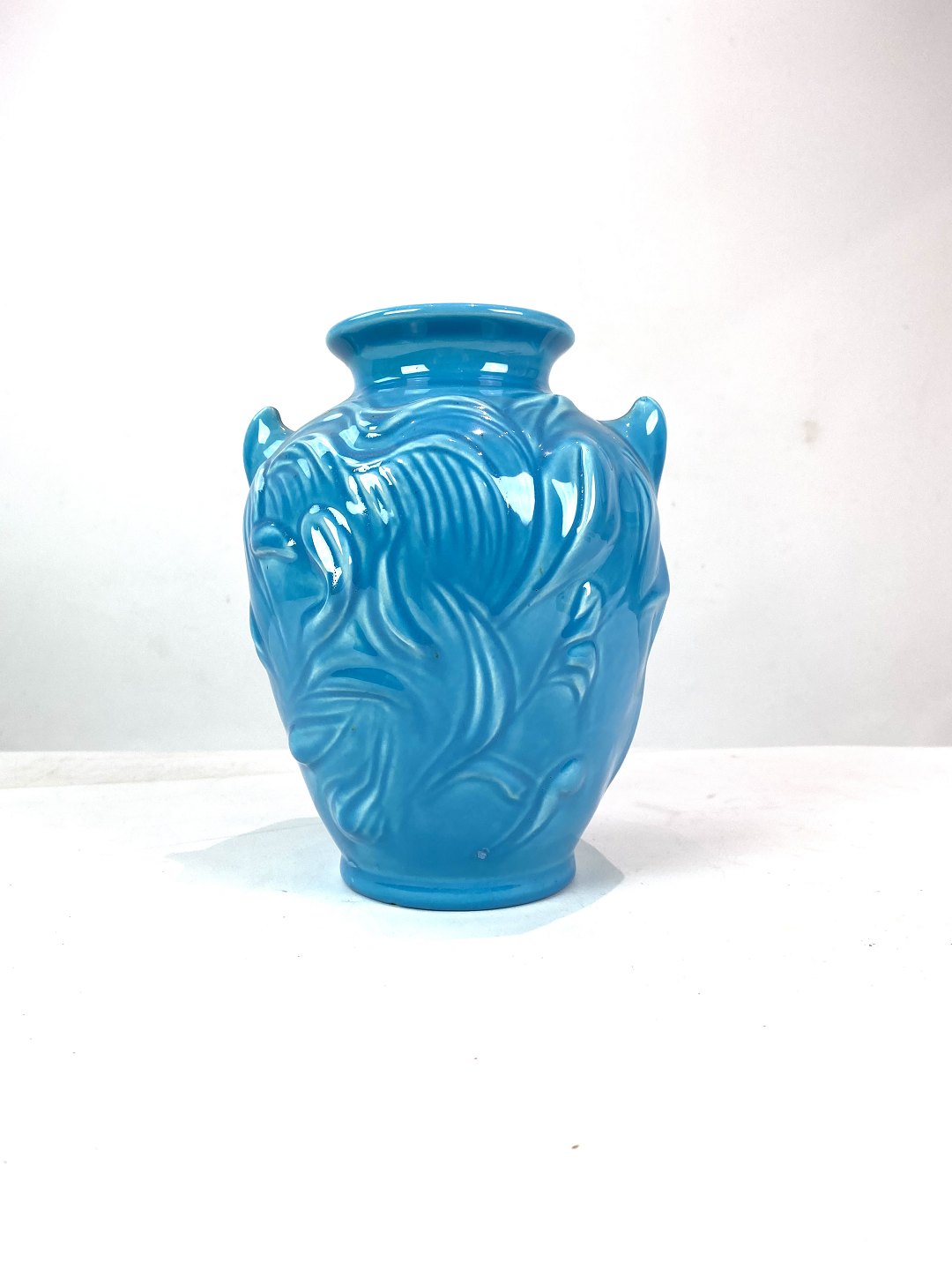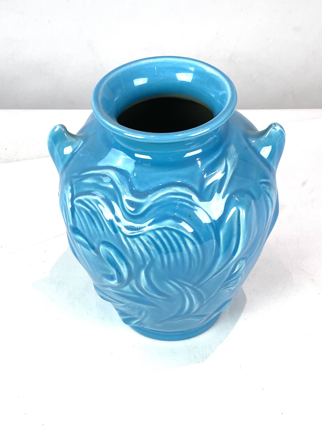 Keramik vase med lyseblå glasur af Knapstrub keramik fra omkring 1960erne. Vasen er i flot brugt stand.