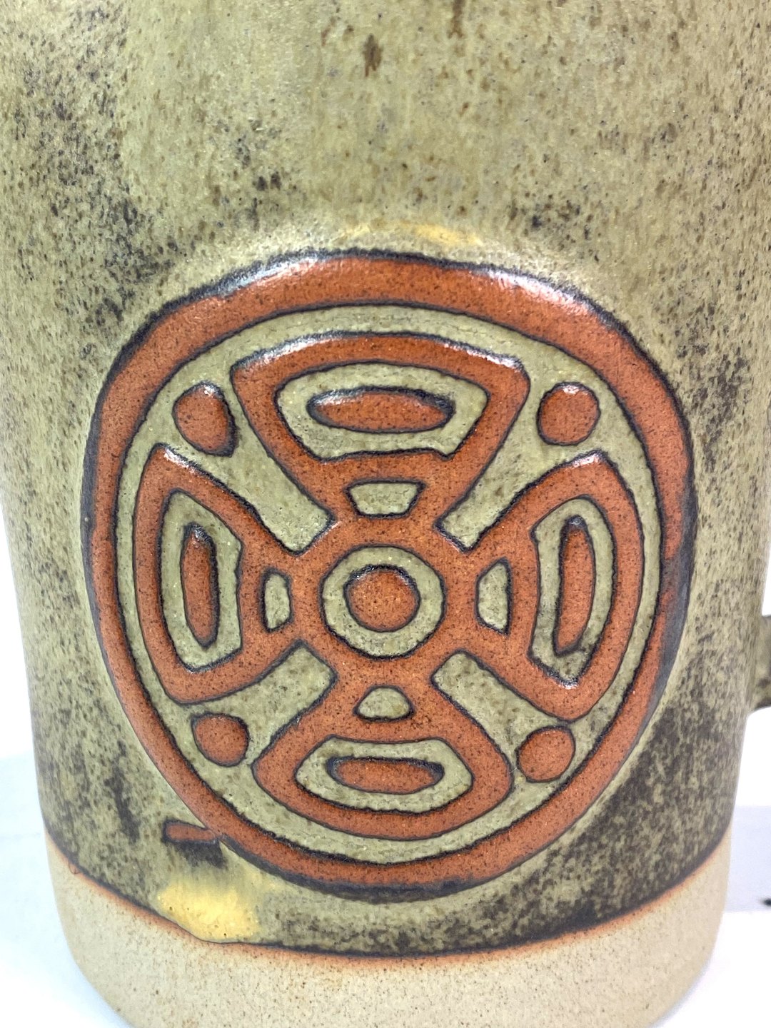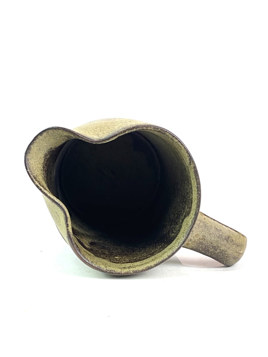 Ceramic jug in brown colours with pattern, from around the 1960s.