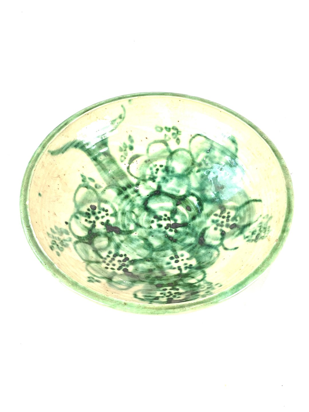 SoldCeramic dish with light glaze and decorated with green pattern, from the 1940s and signed H.