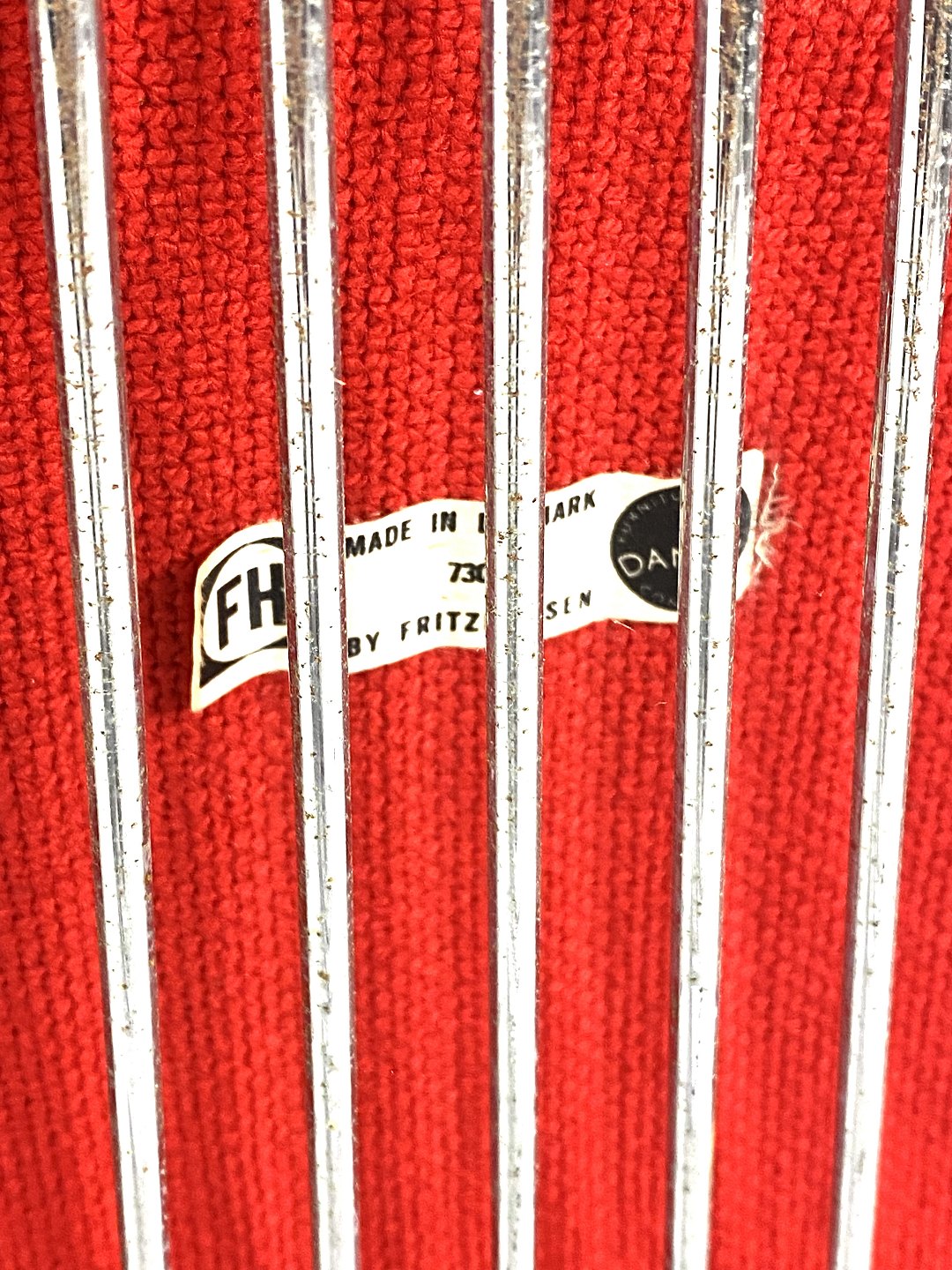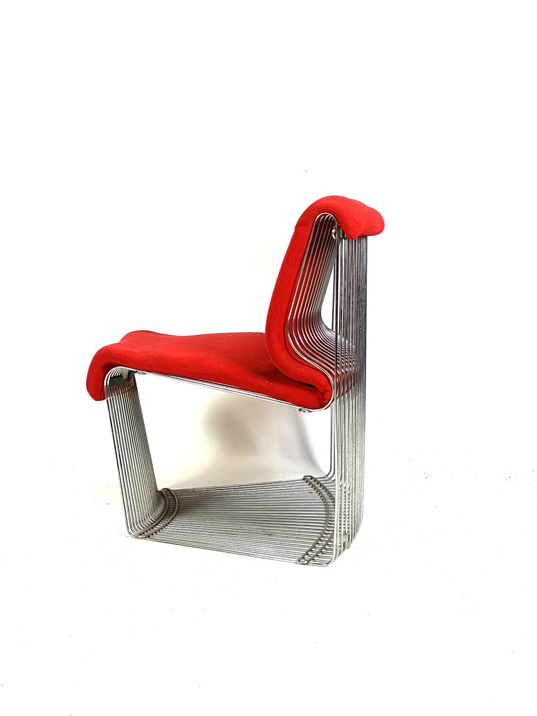 SolgtSæt af to Convex moduler til Pantonova system designet af Verner Panton i 1971 og fremstillet af Fritz Hansen. Modulerne er med stel af metal og polstret med rødt uldstof.