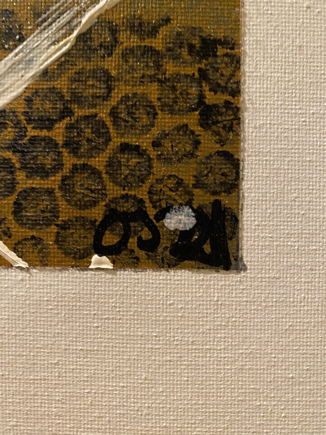 Modern painting on canvas with abstract motif signed O.J. 2021.