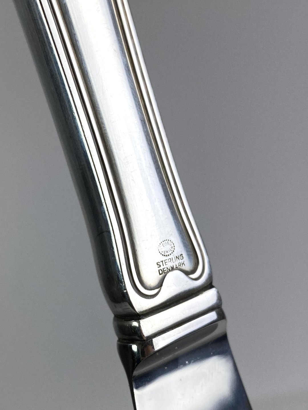 Dinner knife with long shaft, in sterling silver by Georg Jensen.
