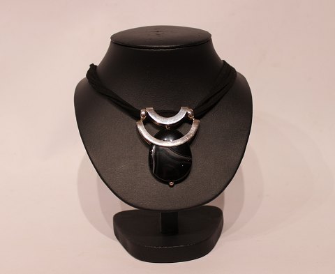 Neck collie in silver with large polished amber lump adorned with silver flowers. In very good used condition.