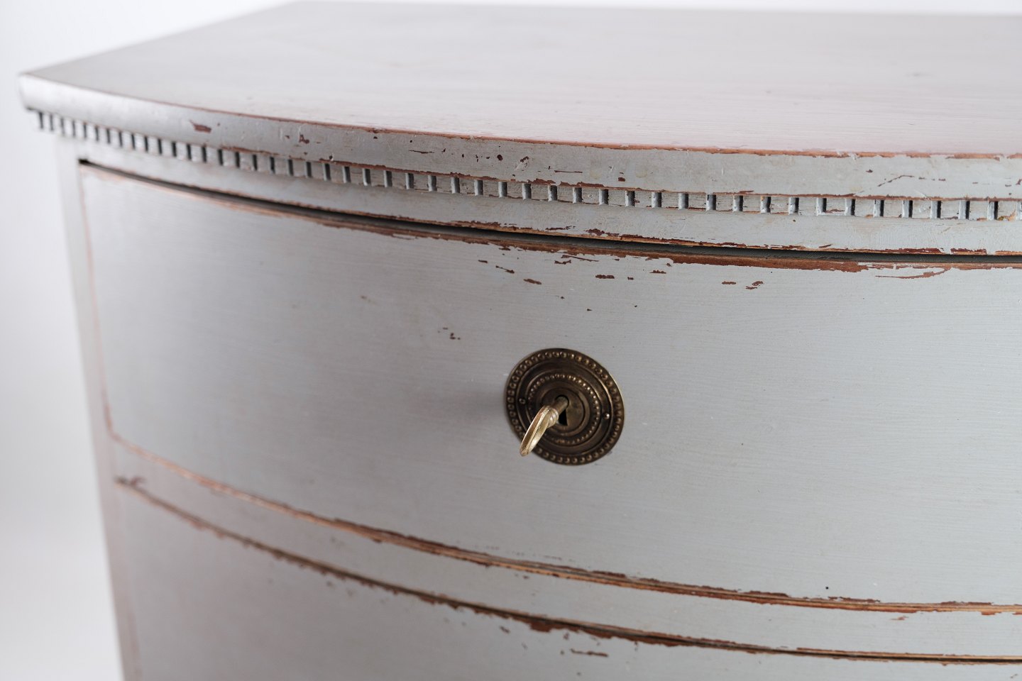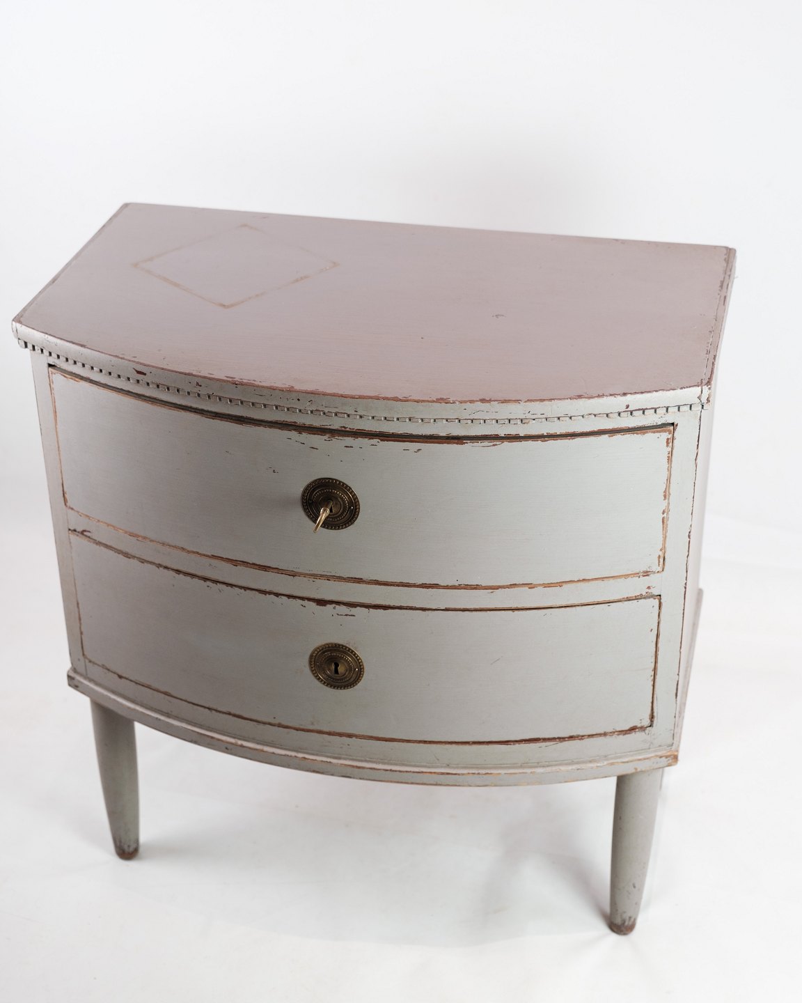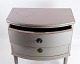SoldGustavian chest of drawers with two drawers in gray painted from the year 1890s. The chest of drawers is called a Copenhagen chest of drawers, as it has a curved front. It is in very vintage good condition.