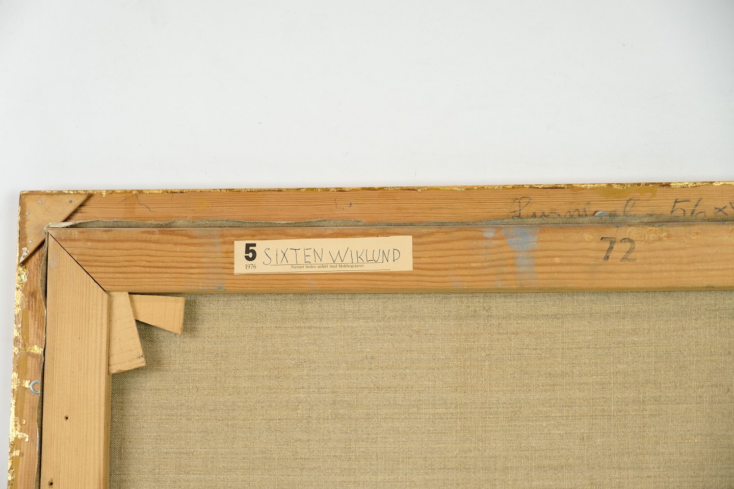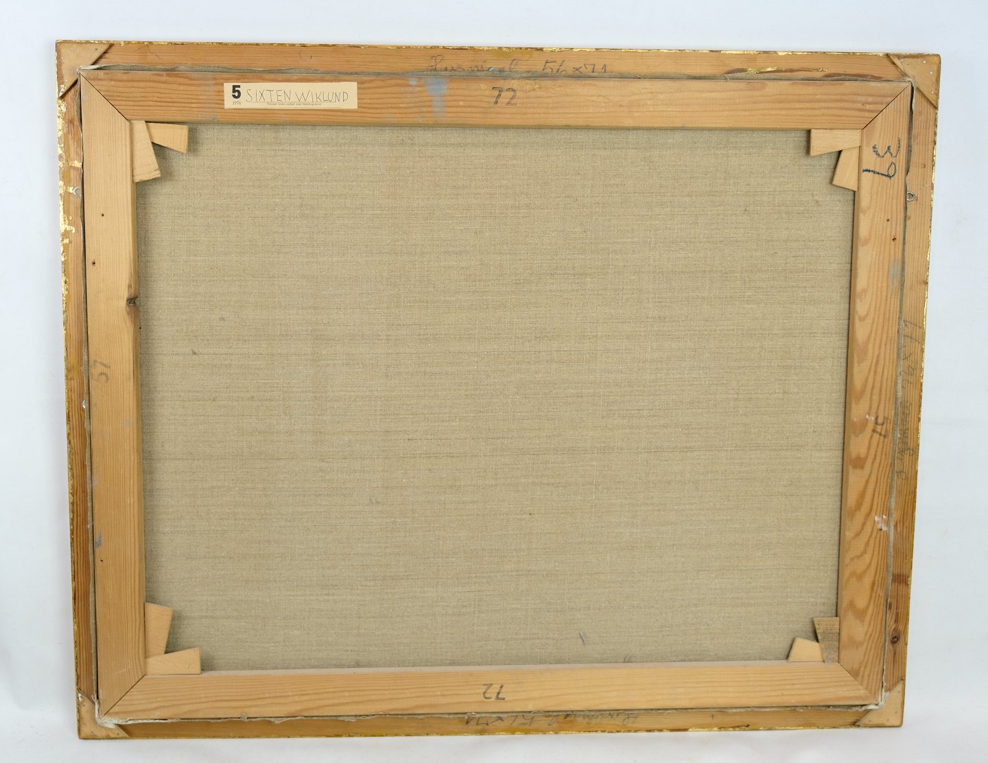 The oil painting on canvas, depicting a tranquil beach and sea scene, was masterfully crafted by Sixten Wiklund (1907-1986) around the 1950s.
