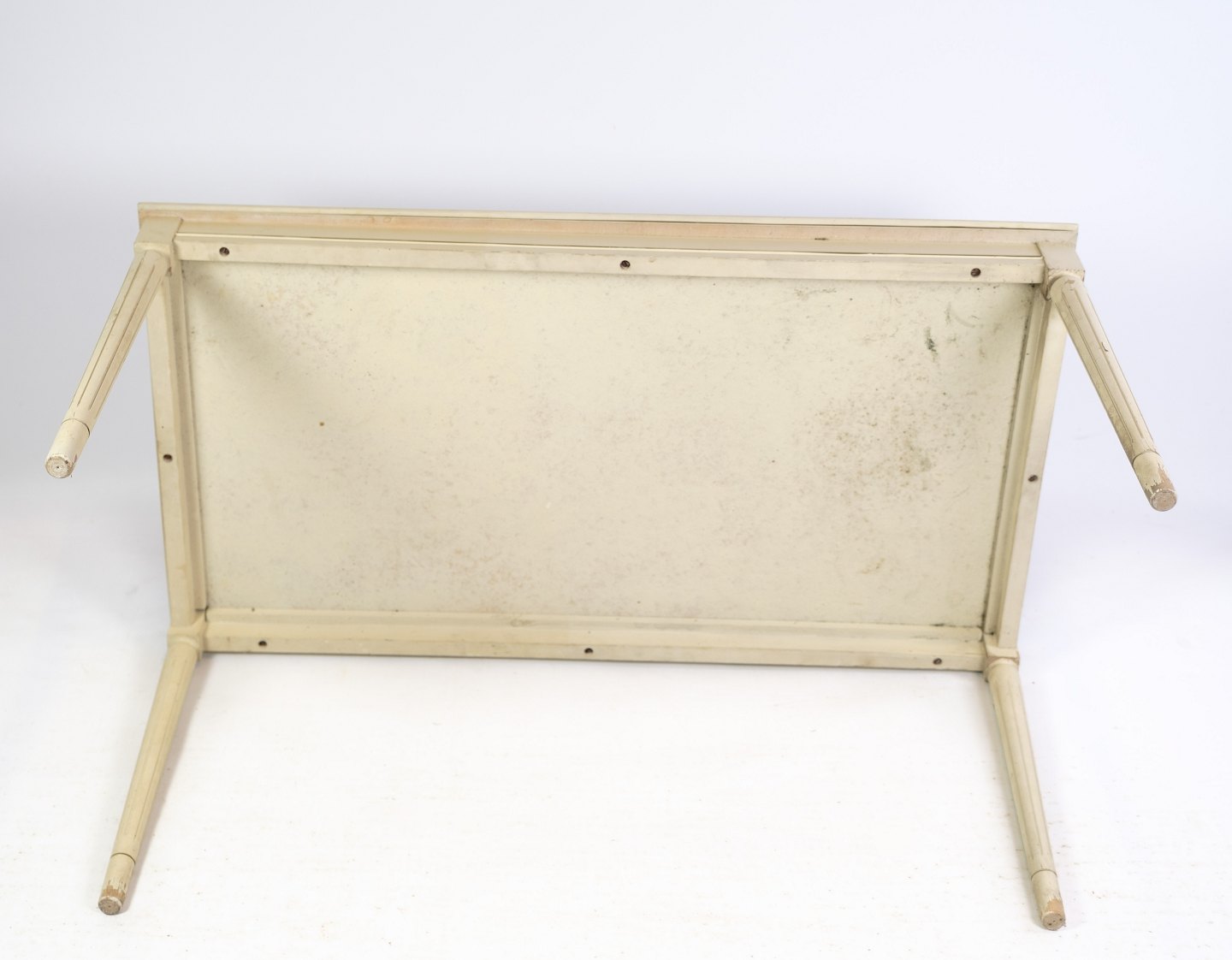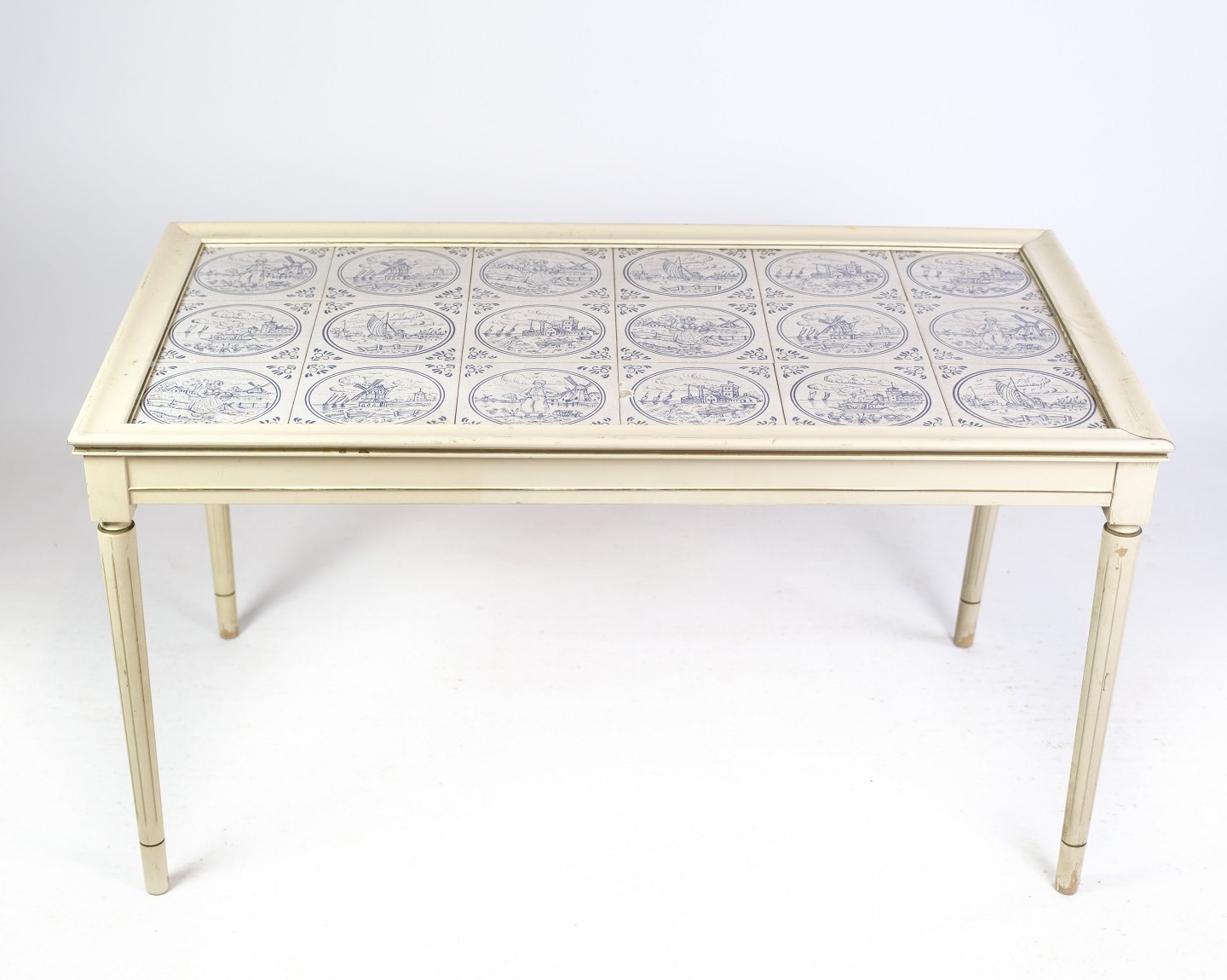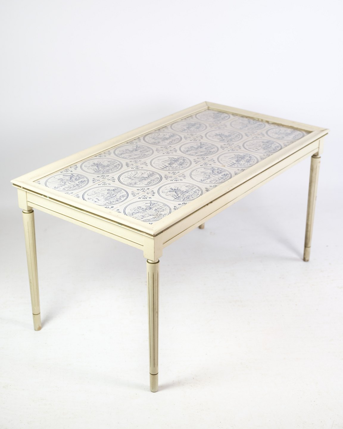 White painted tile table from around the year 1940s. Stands with fine paint in good condition.