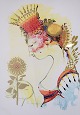SoldSerigraphic poster by Bjørn Wiinblad with a motif of a woman from around the 1970s.
