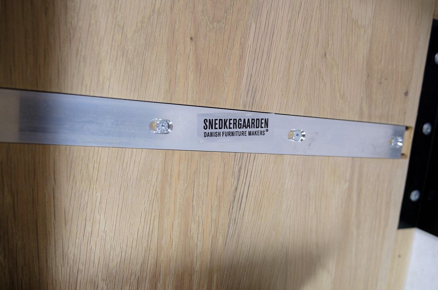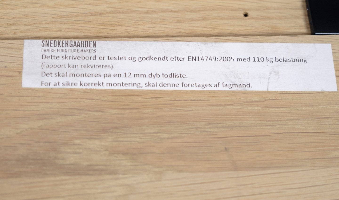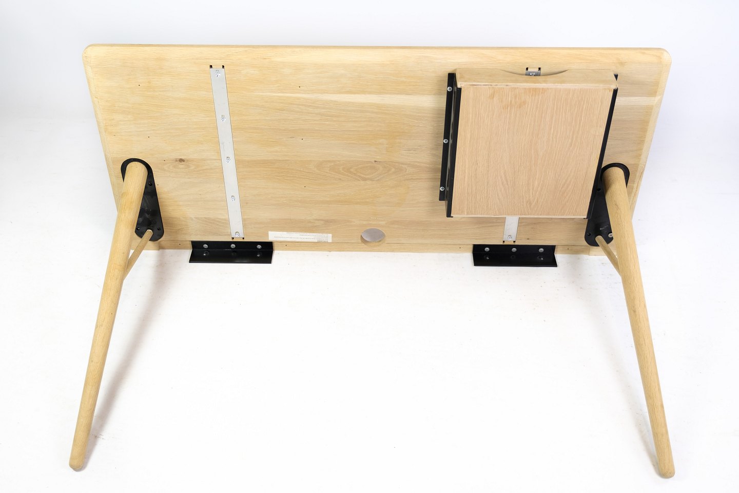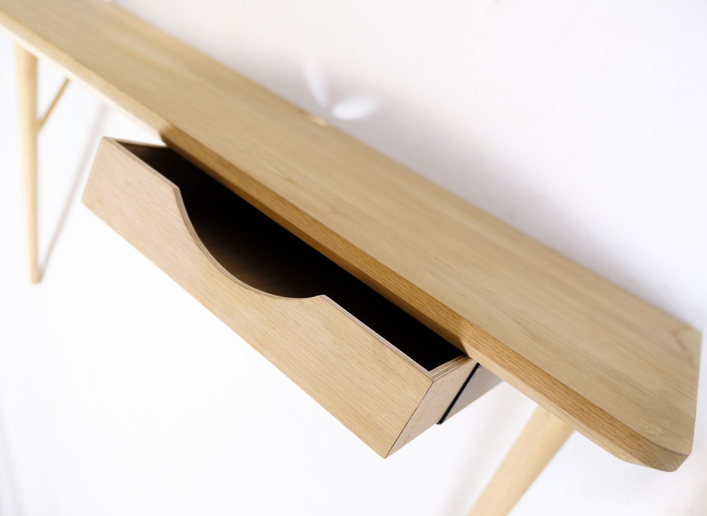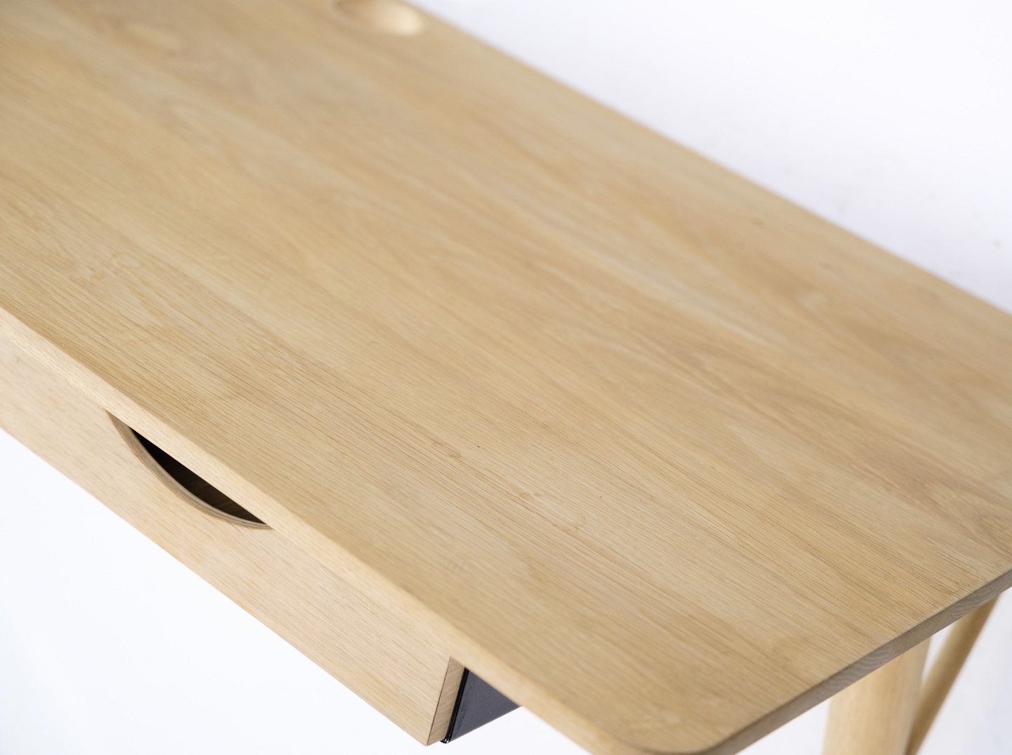 Væghængt skrivebord i dansk design af egetræ fremstillet af snedkergaarden fra omkring 1990'erne.