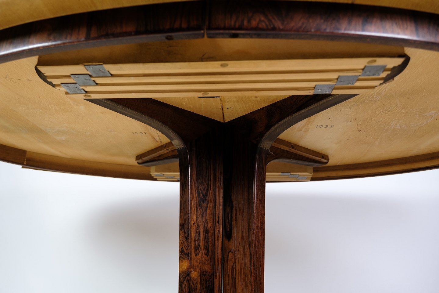 SoldRosewood dining table designed by Bernh. Pedersen & Søn from around the 1960s. The dining table is of high quality. Each piece of furniture is made in the same factory built by Bernh. The Pedersen family in 1902, located in a small community on the Danish nature.