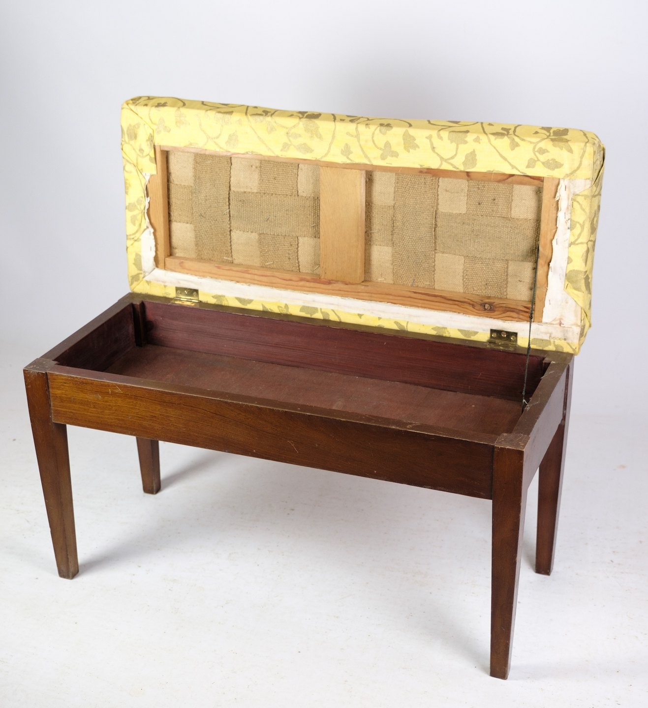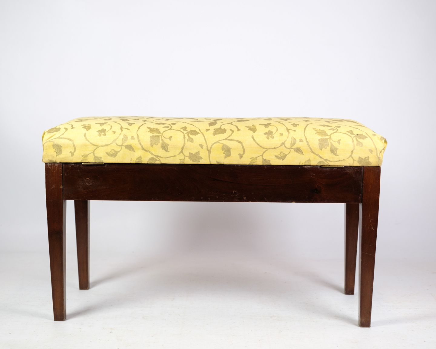Piano bench / stool in mahogany with light floral fabric from around 1910.