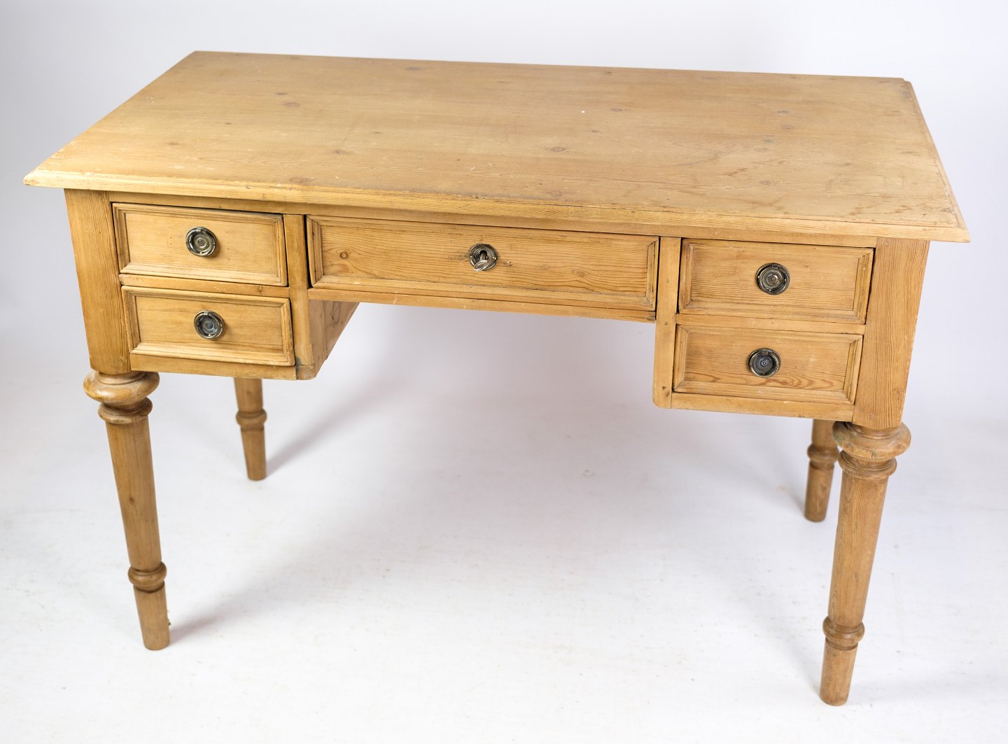 Lille skrivebord med skuffer i fyr træ fra omkring år 1880’erne.