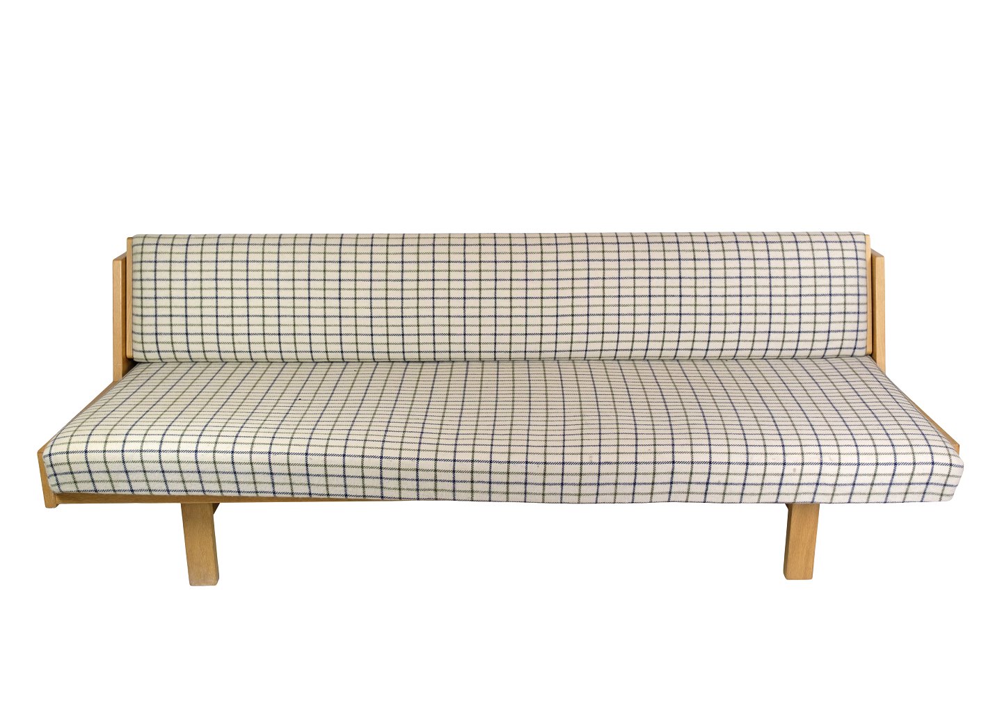 SoldHans J. Wegner's oak daybed / sofa is a unique design from around the 1960s, created with a timeless aesthetic and manufactured at Getama. It impresses with a nice solid oak frame and light fabric cushions with a charming checkered pattern. The sofa is in nice used condition, which allows you to enjoy its unique charm and comfort to the fullest.