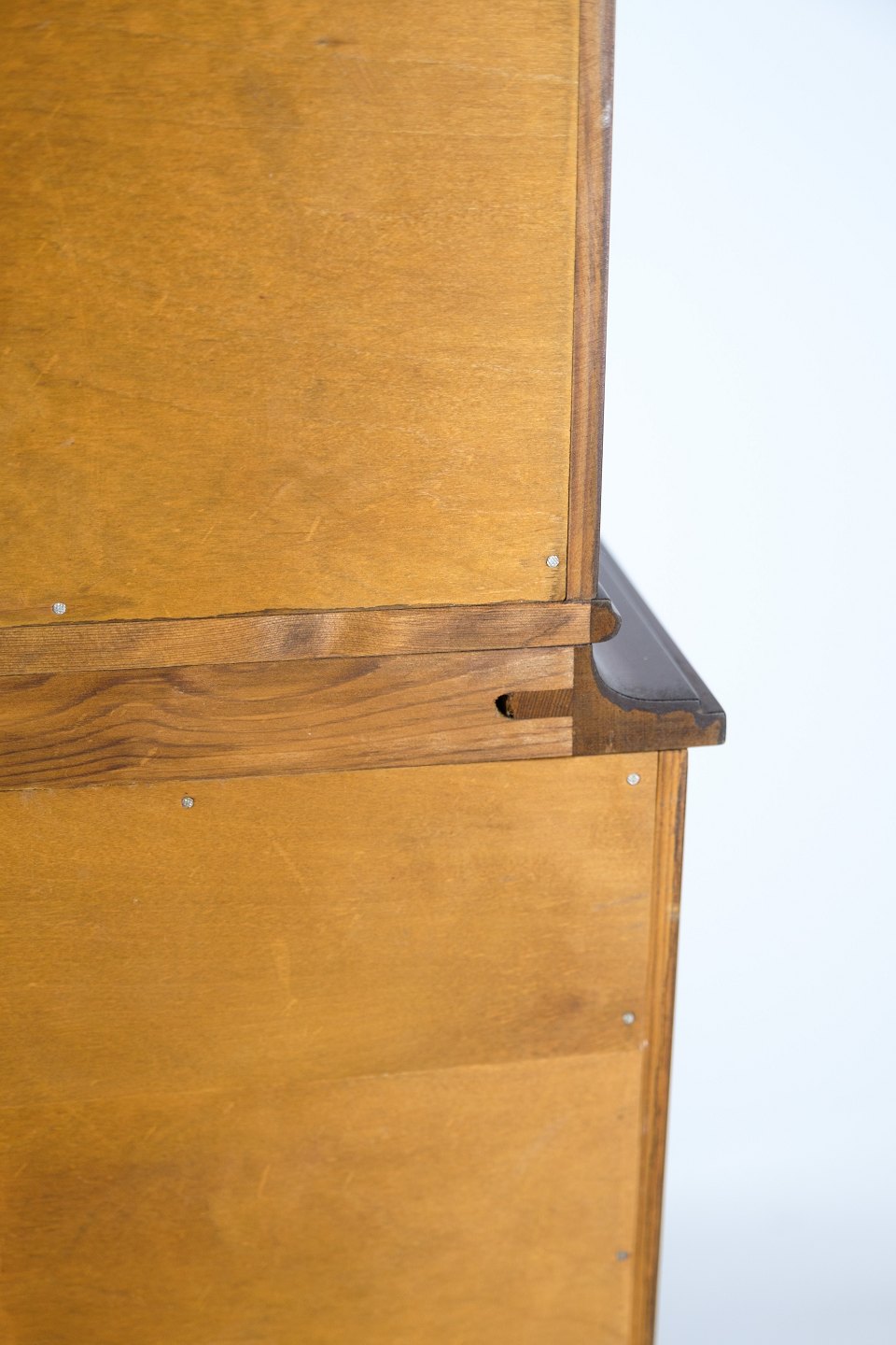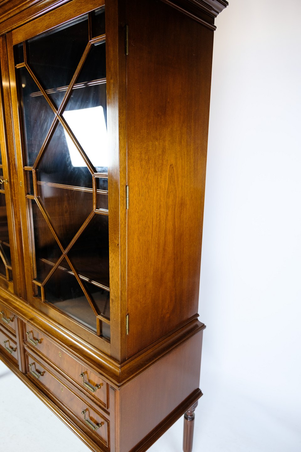 The display cabinet is designed with glass doors that provide a clear view of the contents inside, making it ideal for displaying your most prized items or collections. The classic design and quality materials make it a timeless piece of furniture that can grace any home with its refined aesthetics and mid-20th century charm.