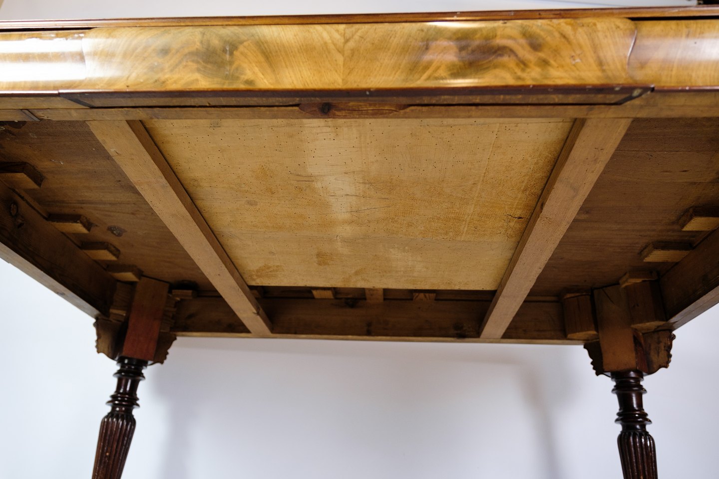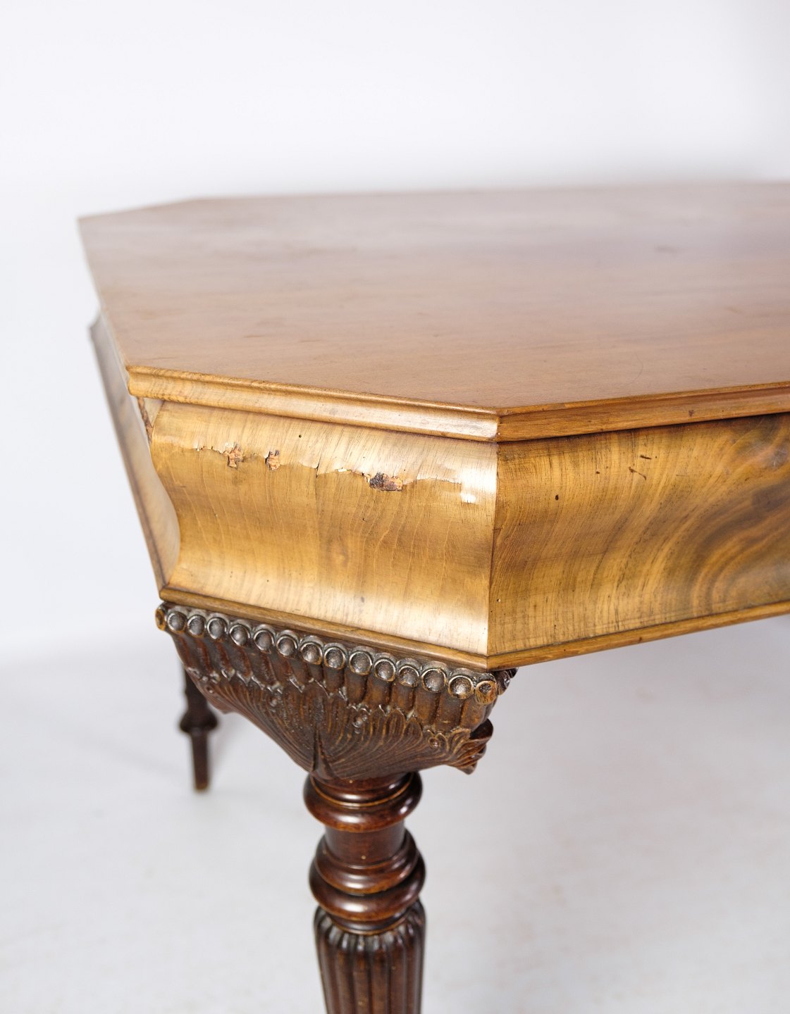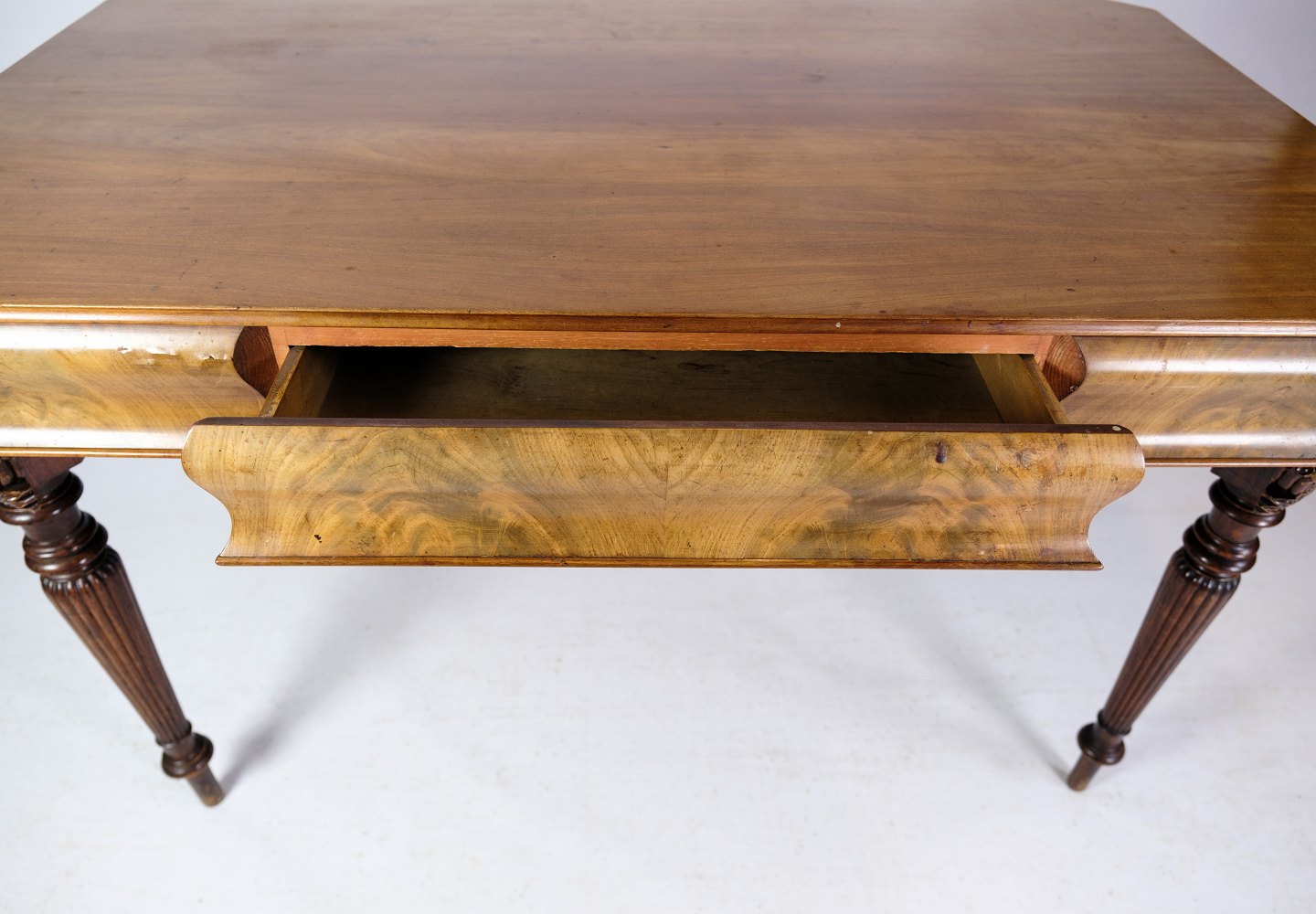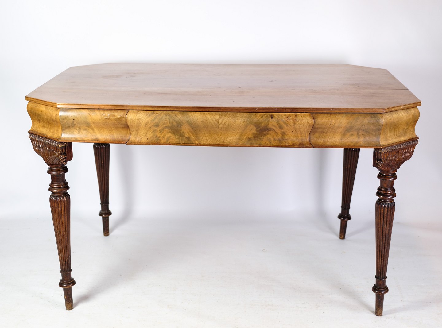 Mahogany dining table / desk with carvings on the legs from the Late Empire period from around the 1860s.