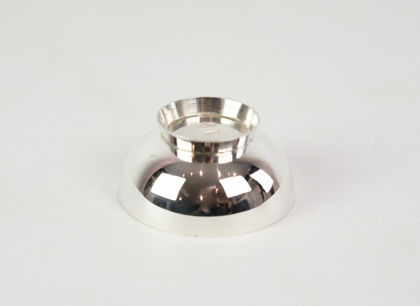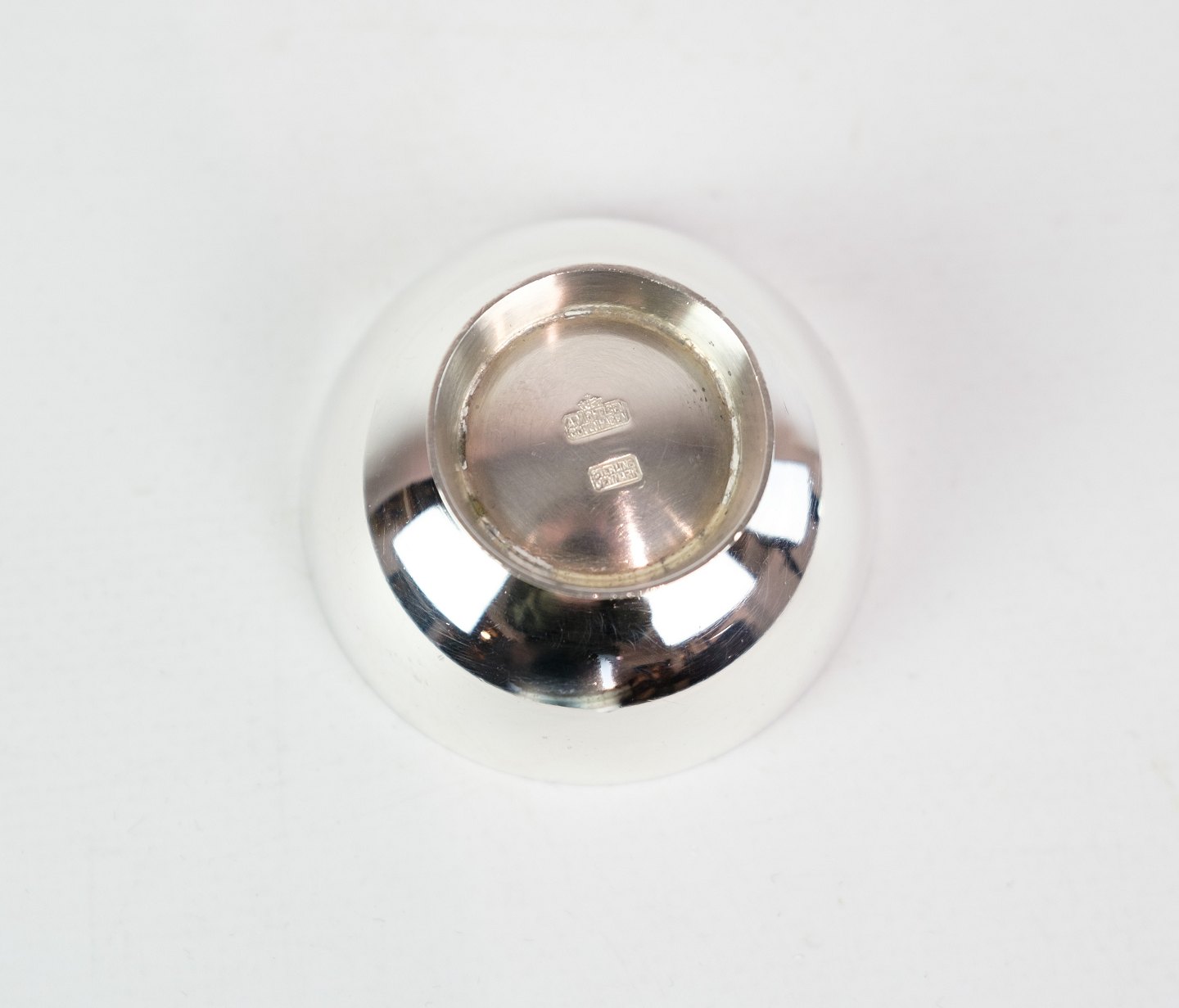 Salt dish designed by A. Michelsen, model A9 with blue enamel, stamped. Fully intact.