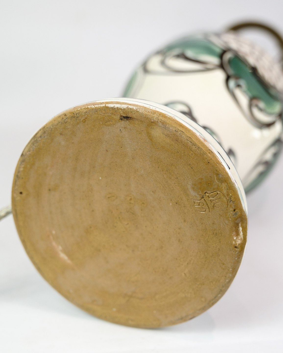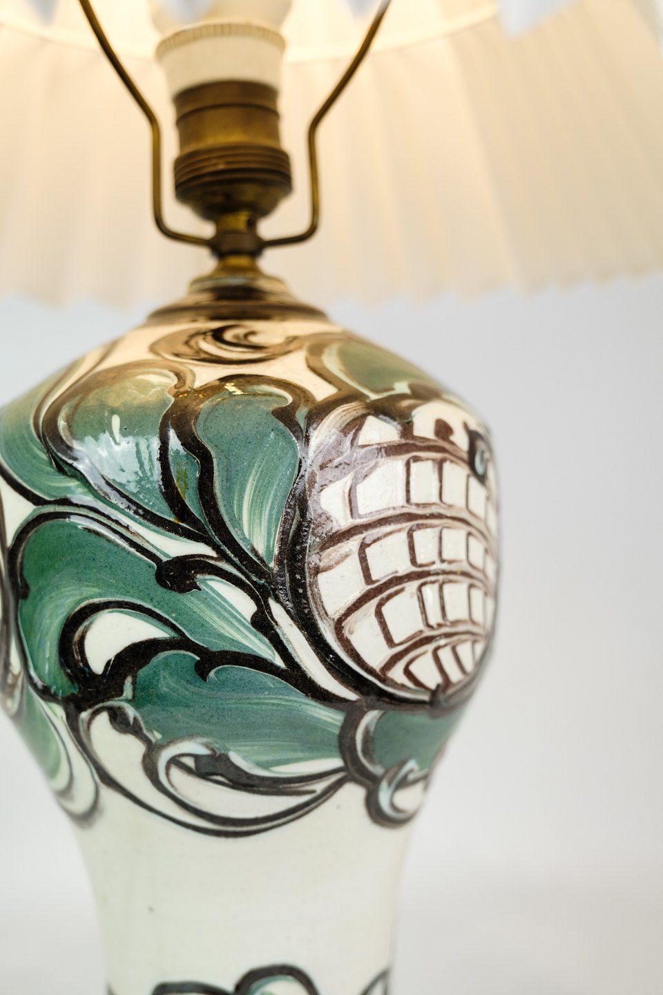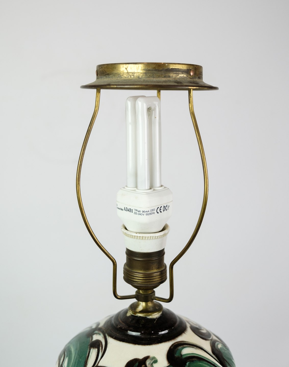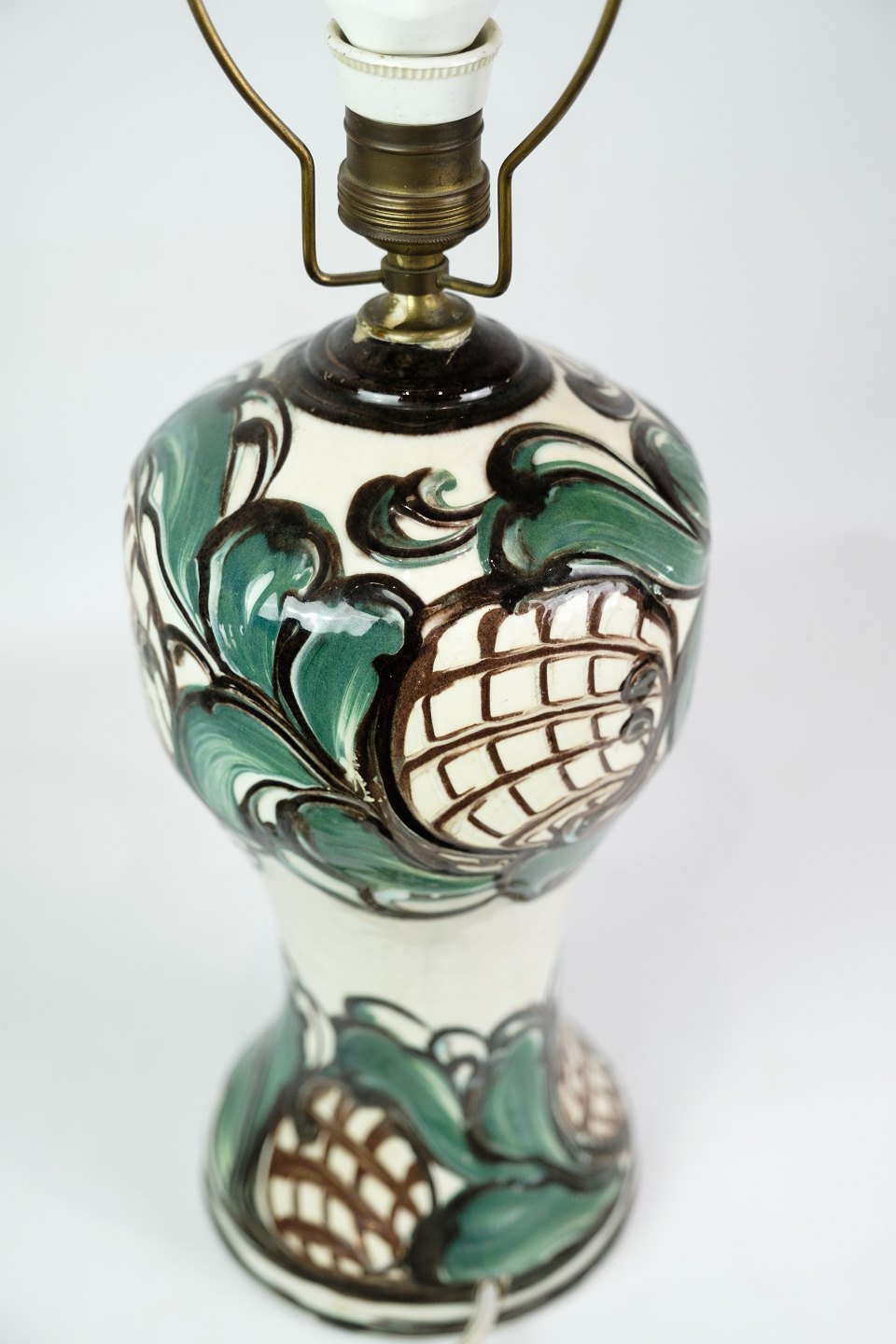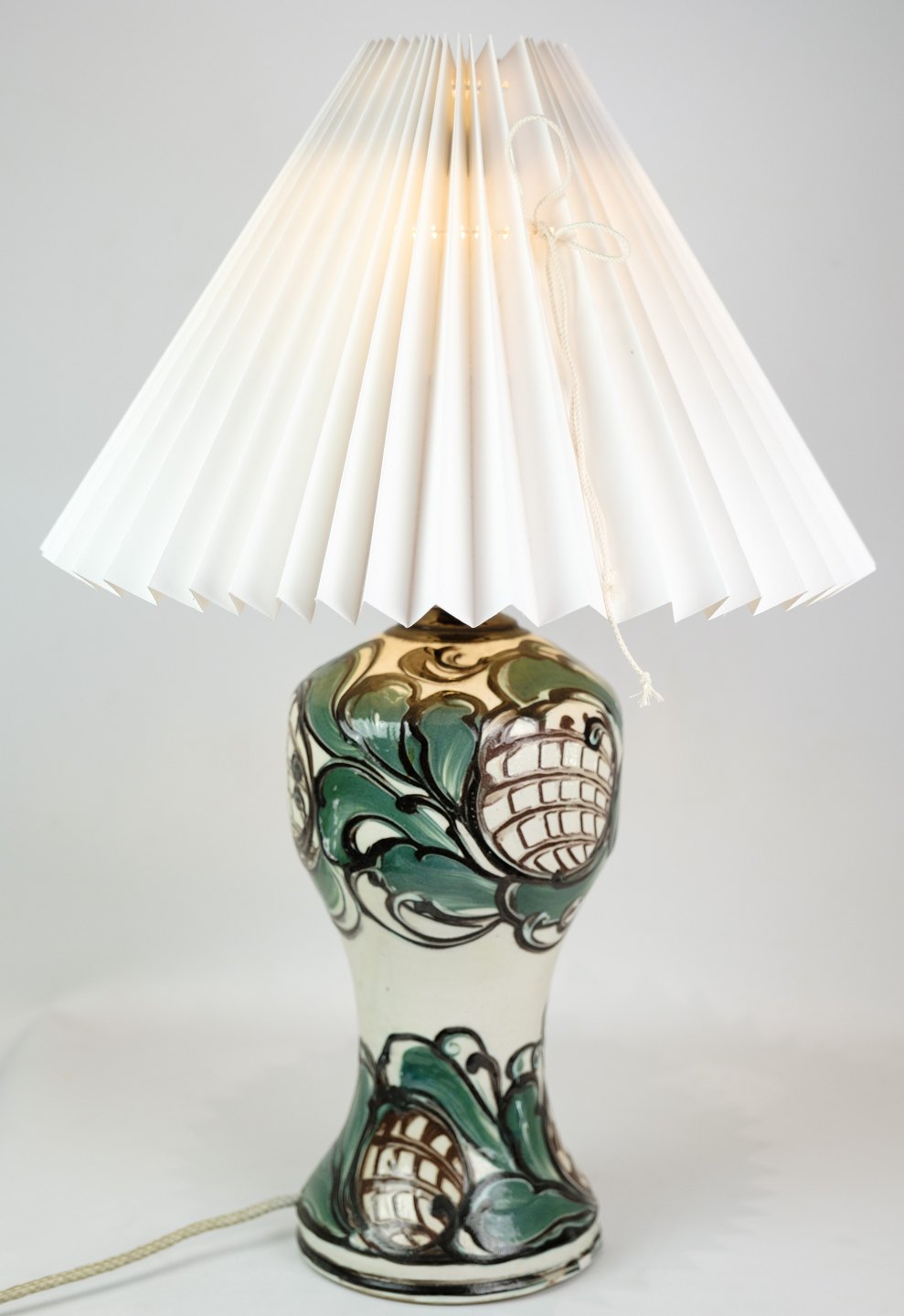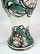 Ceramic table lamp by Danico with green and light colors with Pink Rose lampshade from around the 1940s.