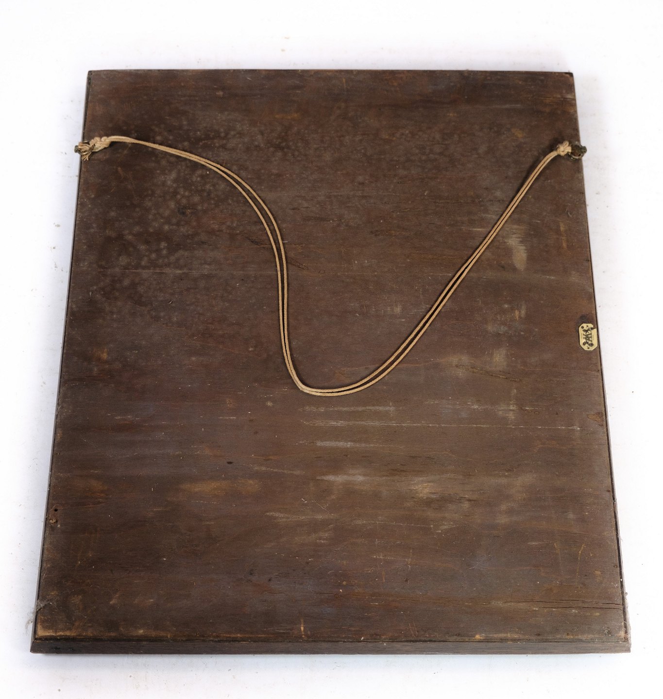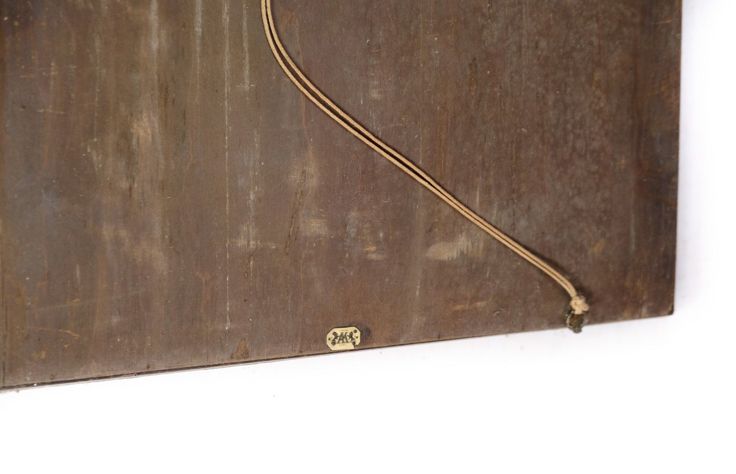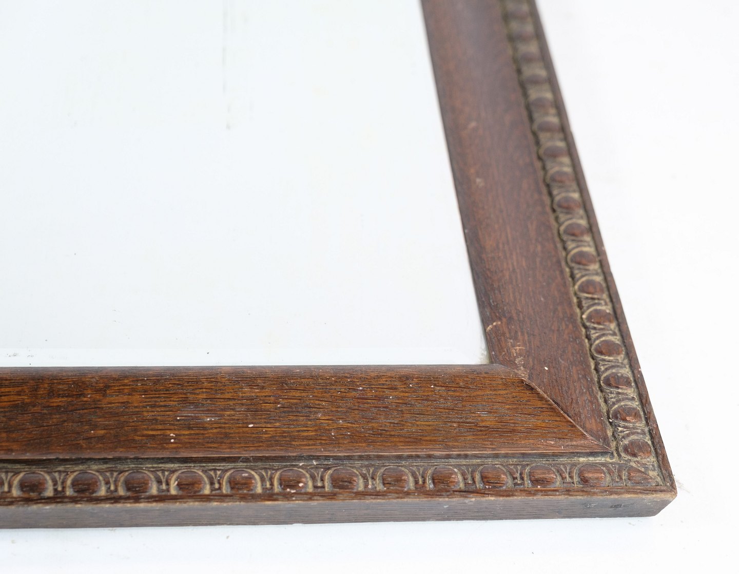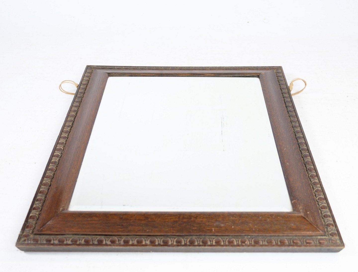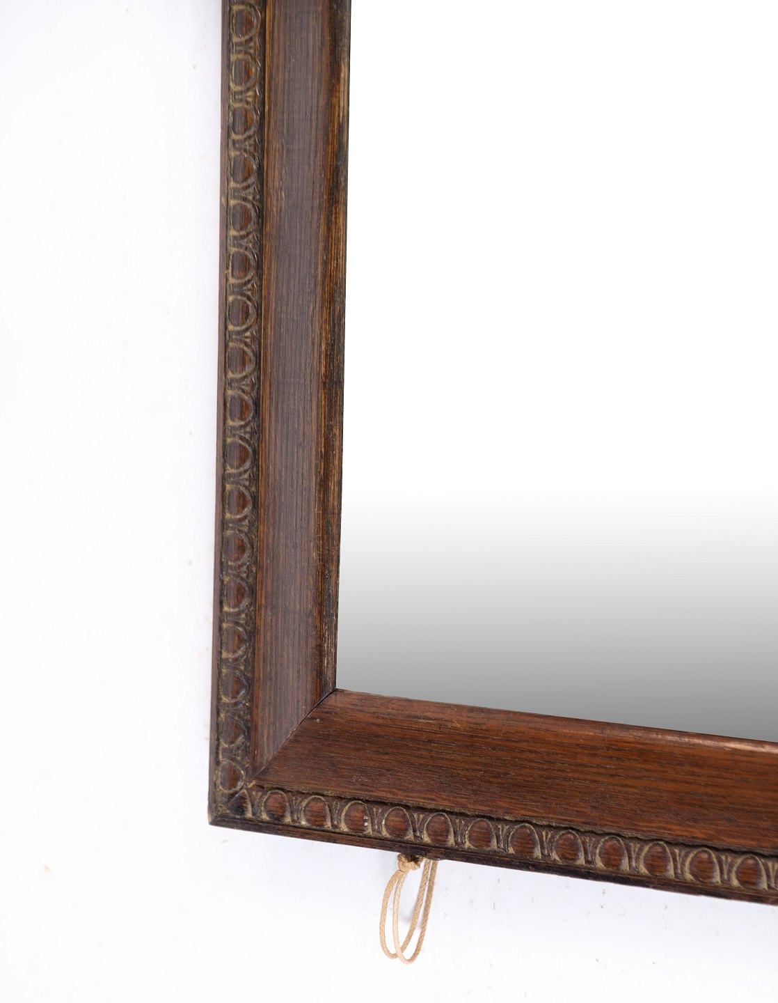 Antique mirror in dark polished wood with decoration from around the year 1890.