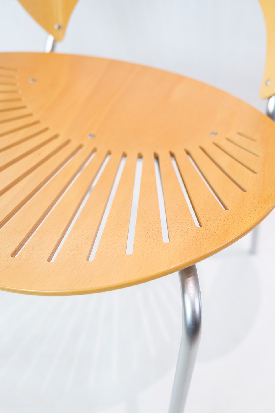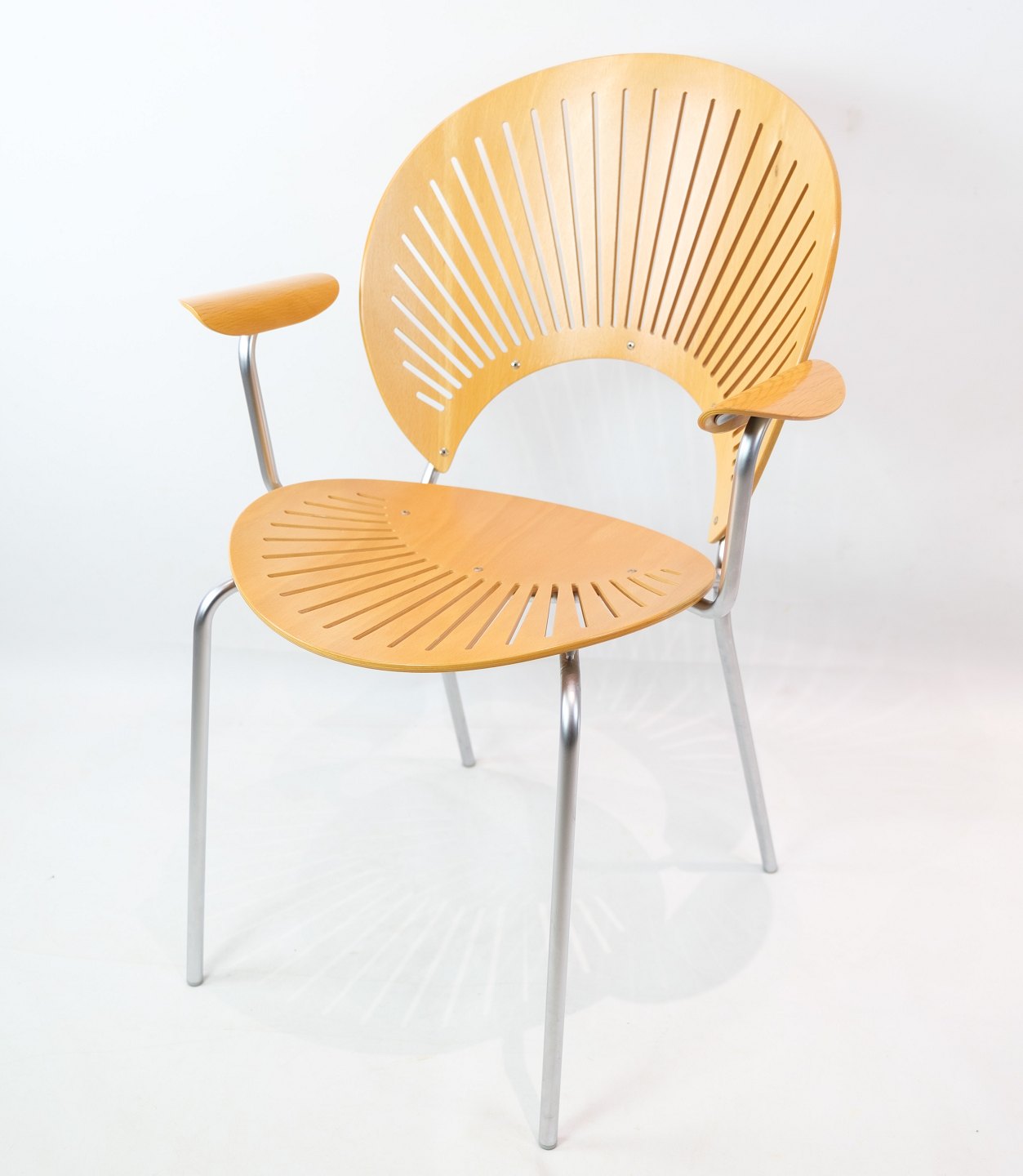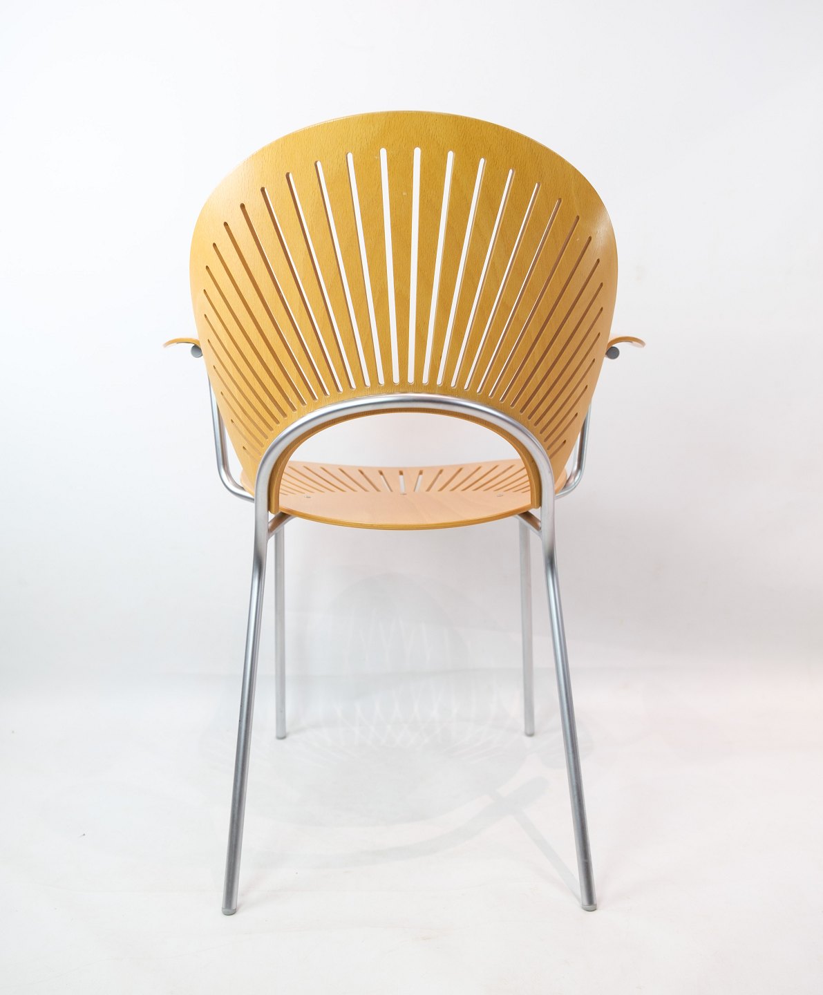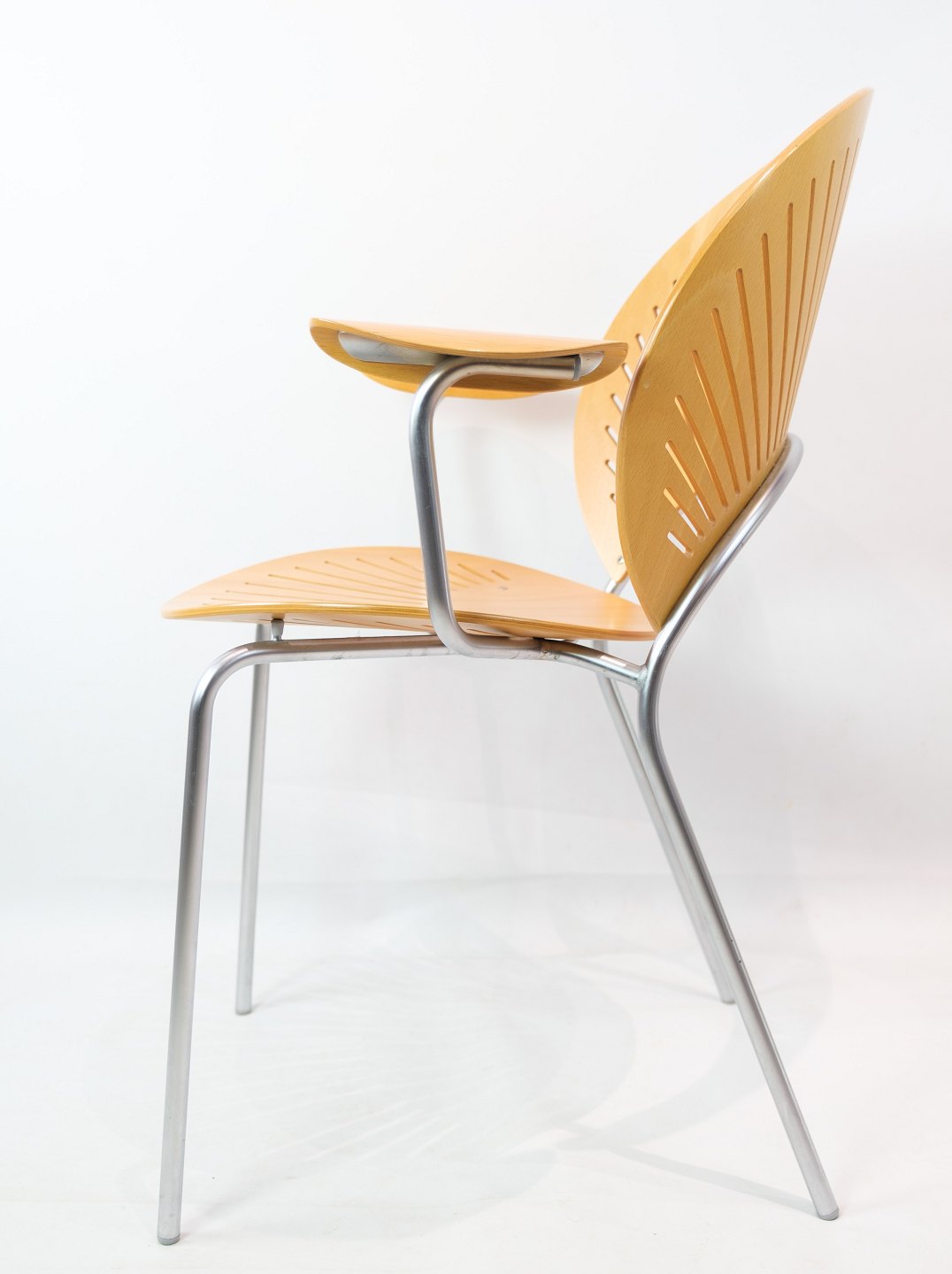 SoldTrinidad Armchair, model 3297, designed by Nanna Ditzel (1923 - 2005) with beech shells with chromed steel frame manufactured by Fredercia Furniture.