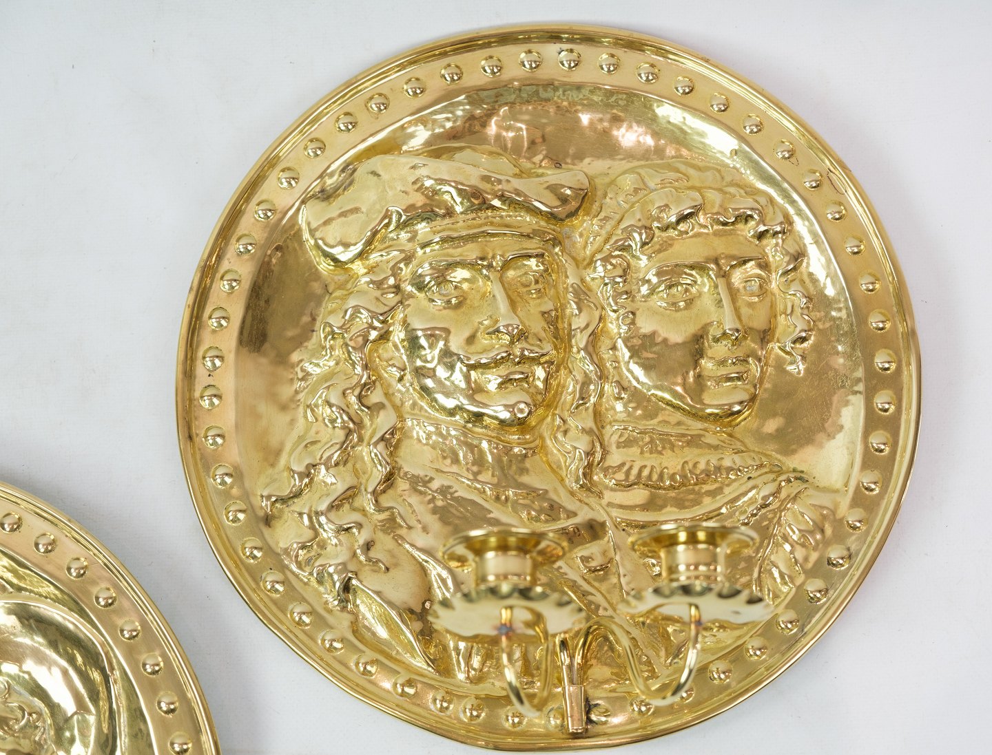 A pair of antique brass wall sconces from around the 1860s.