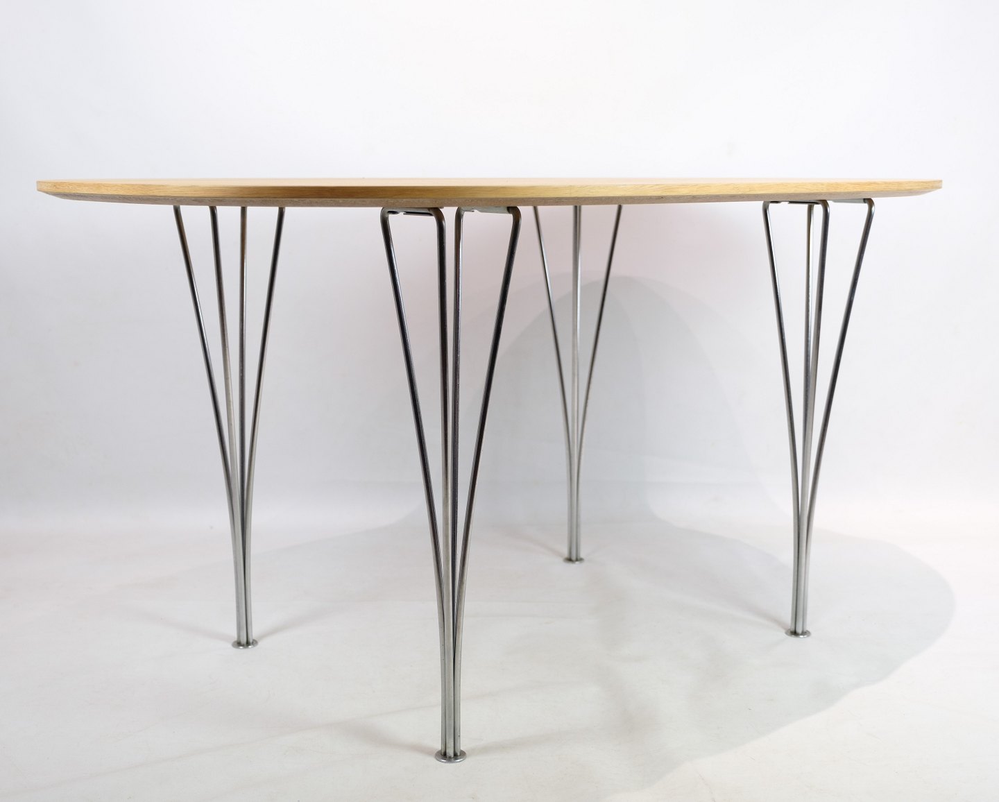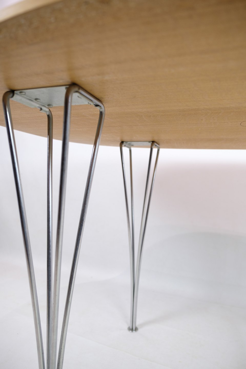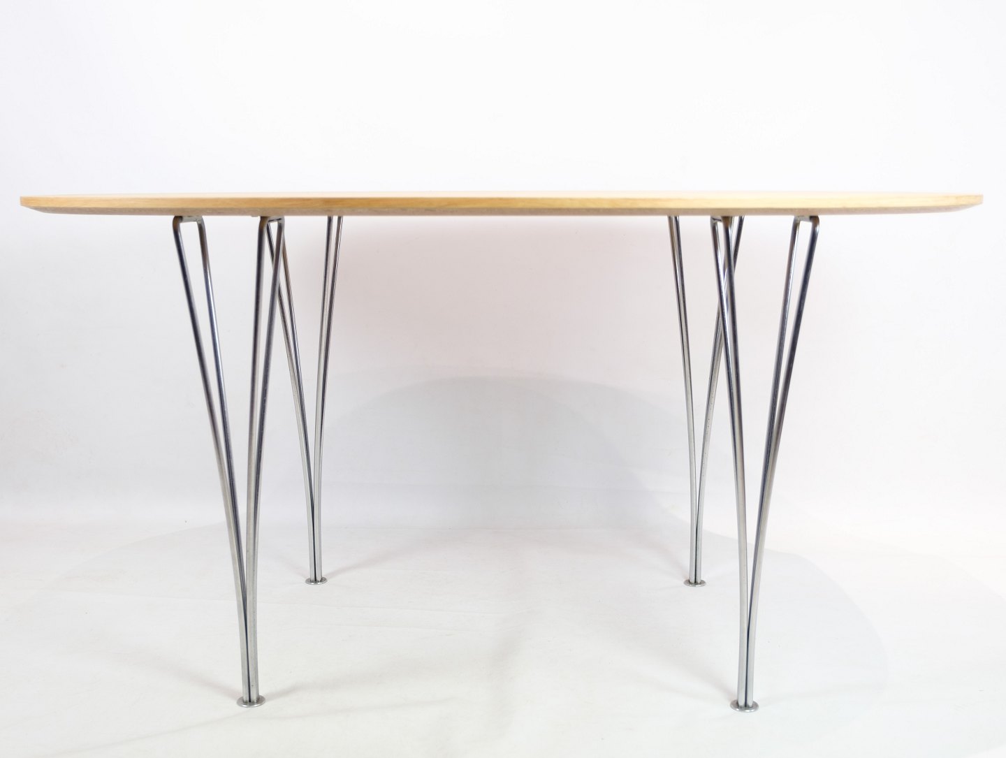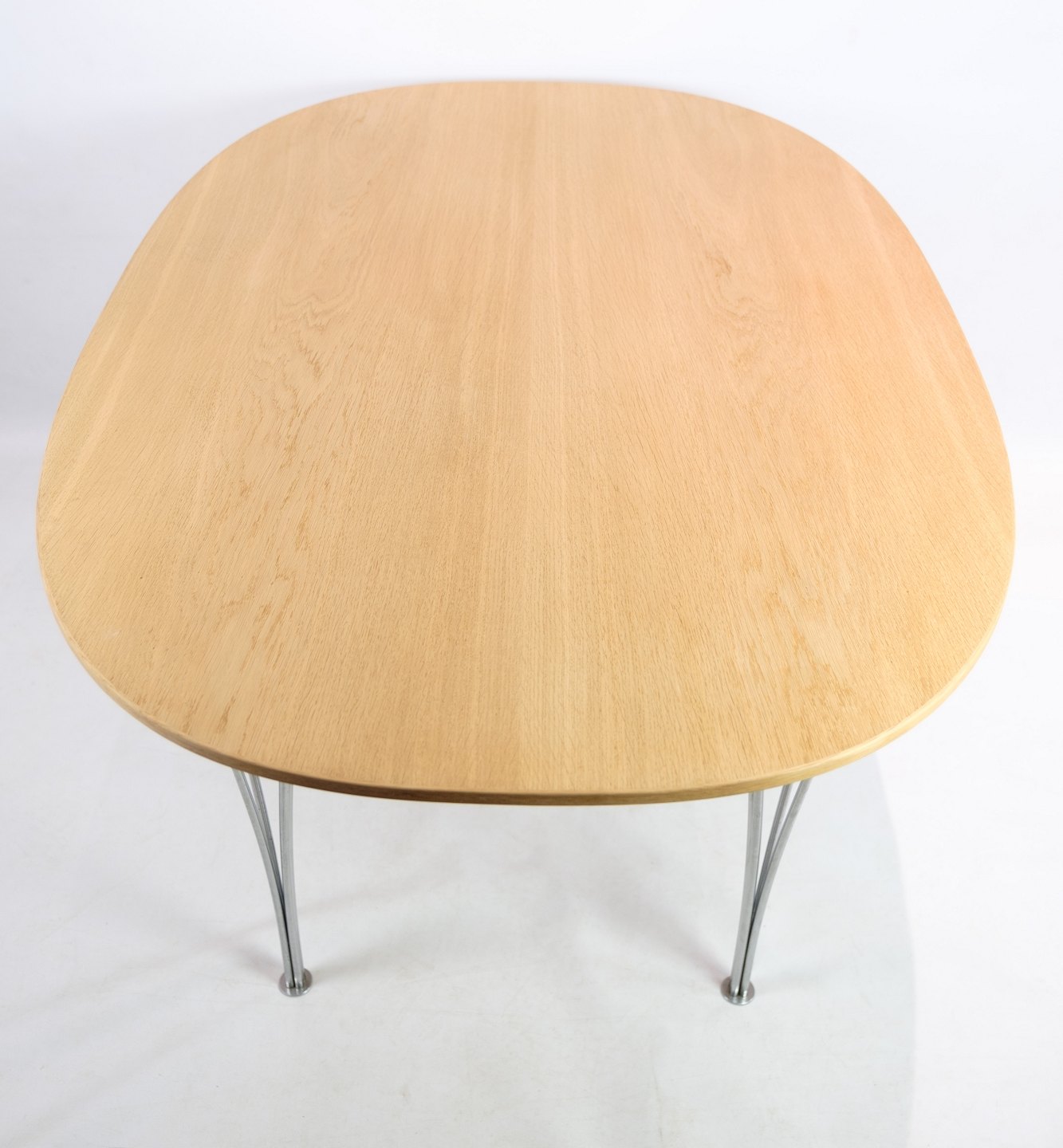 Dining table, model B611 in light oak, designed by Piet Hein and Bruno mathsson in 1968 and manufactured by Fritz Hansen. A vintage dining table with original label in very fine condition.