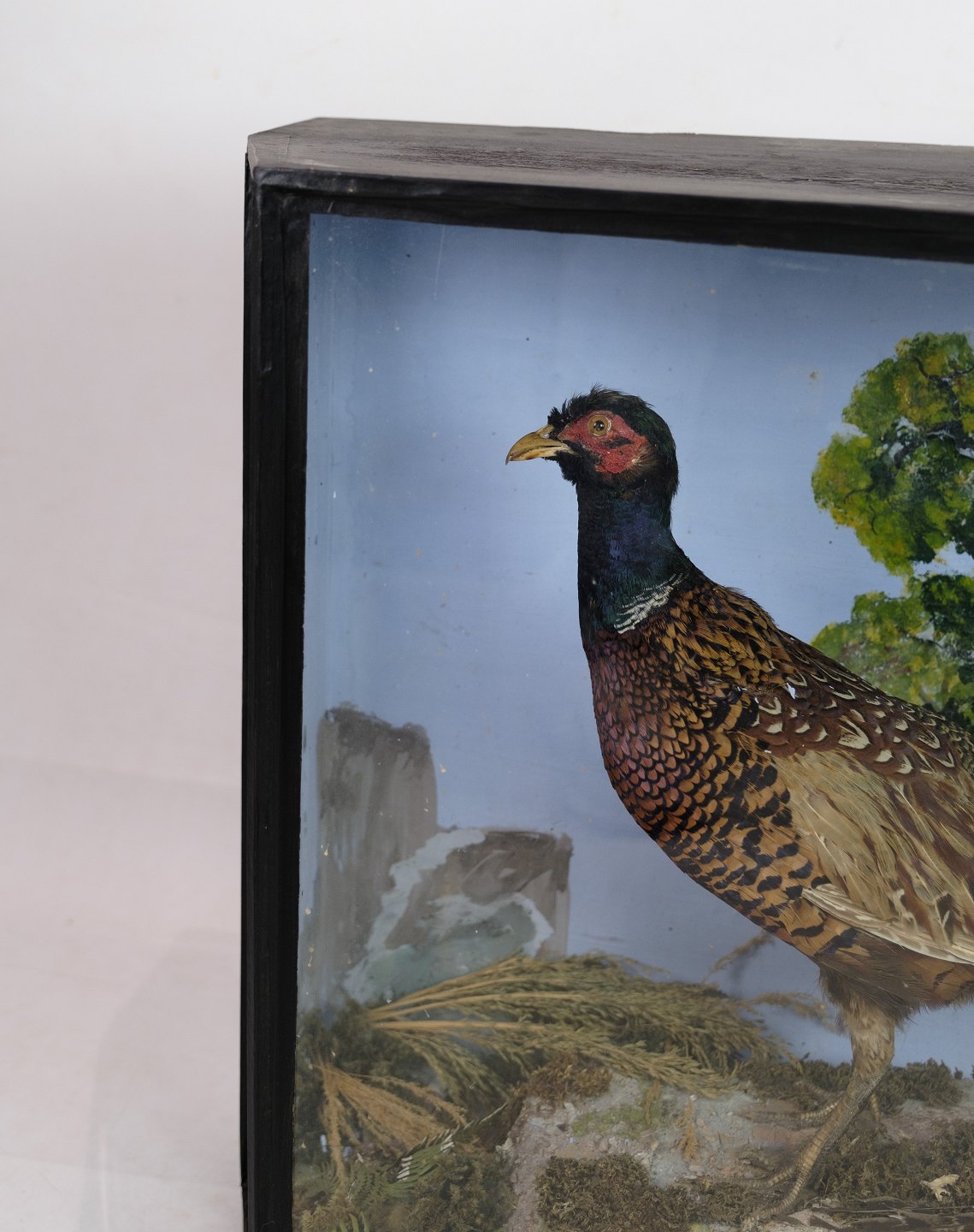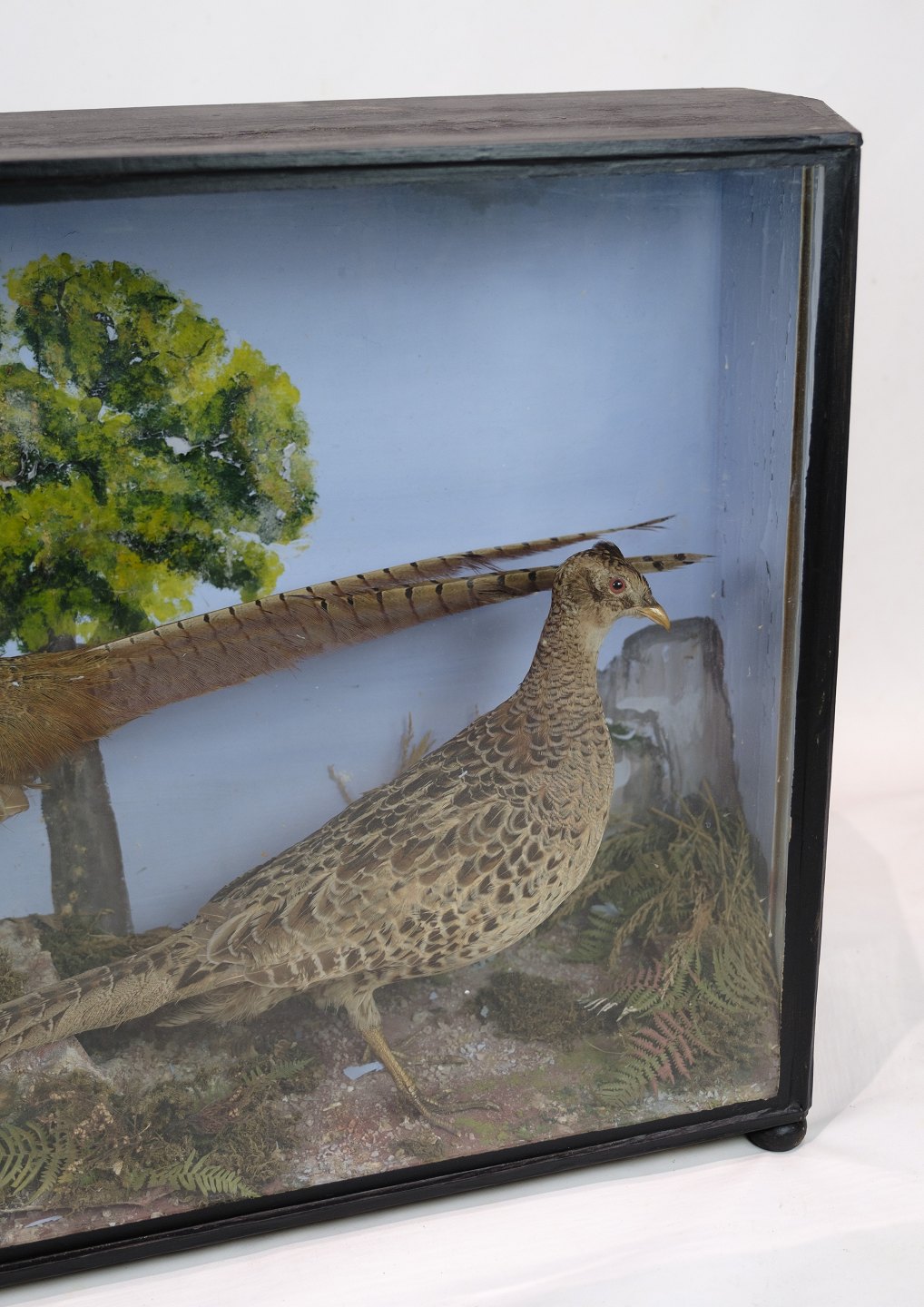 Malet udstilllings skab med fasaner fra omkring år 1960'erne.