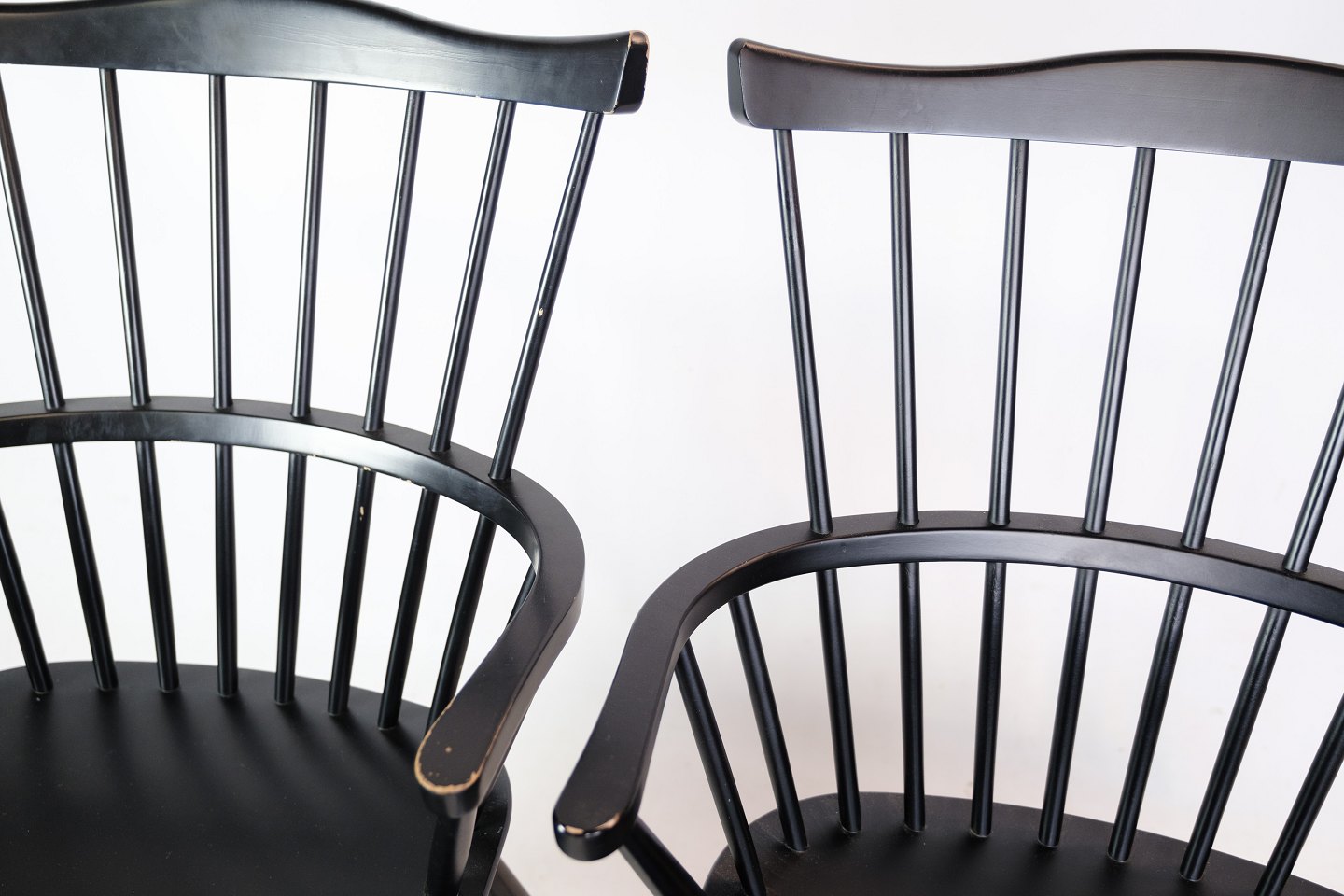 Spisebordstole, model J52B, sort bejdset i træsorten bøgetræ fremstillet af FDB Møbler.
