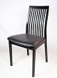 SolgtSæt af 4 spisestuestole, model 712, i sort bejdset ask fremstillet af K. Høffer Larsen A/S. Mellemhøj spisestuestol, med lodrette pinde i ryggen, der giver god siddekomfort.