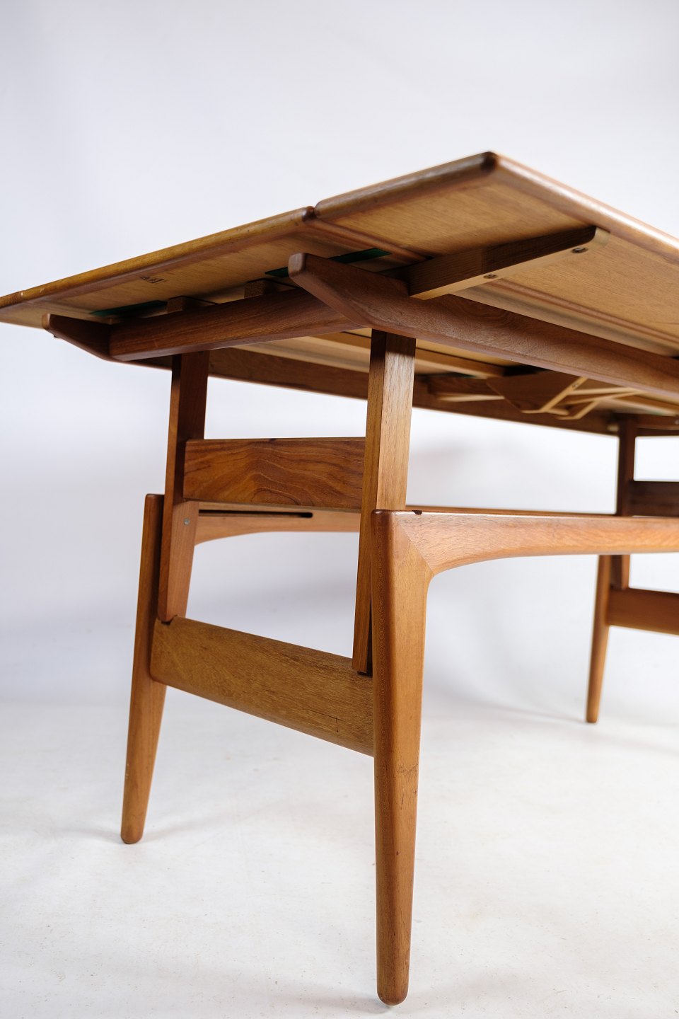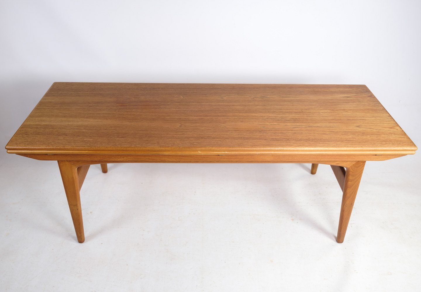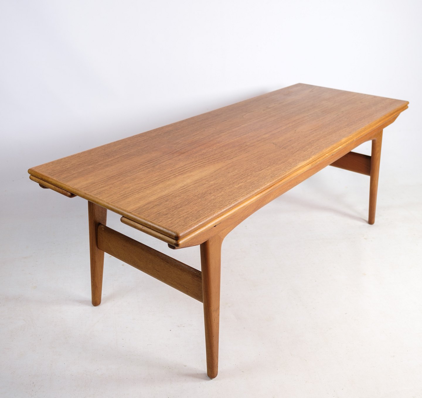 SolgtSofabord / spisebord i træsorten teaktræ ofte kaldet Københavner bord fremstillet af dansk møbelproducent fra omkring 1960'erne.