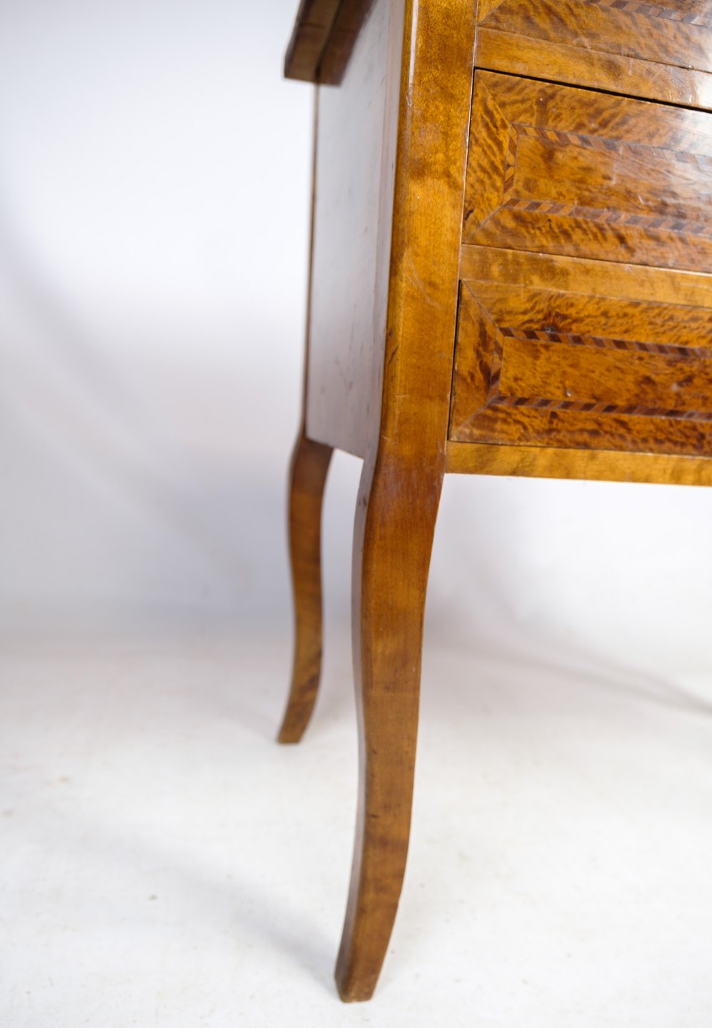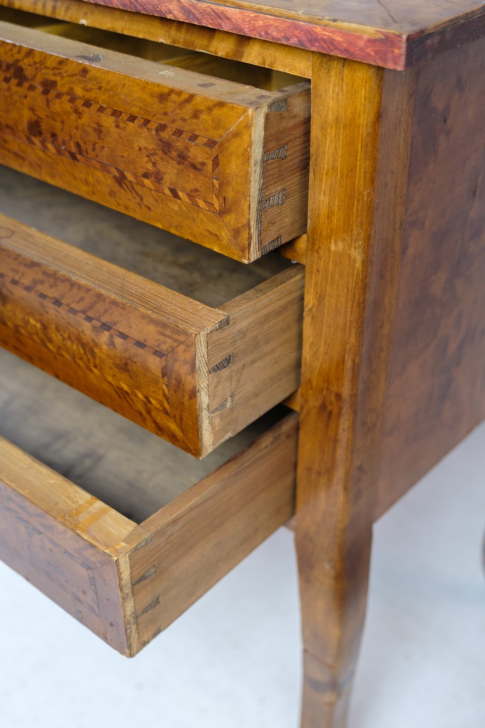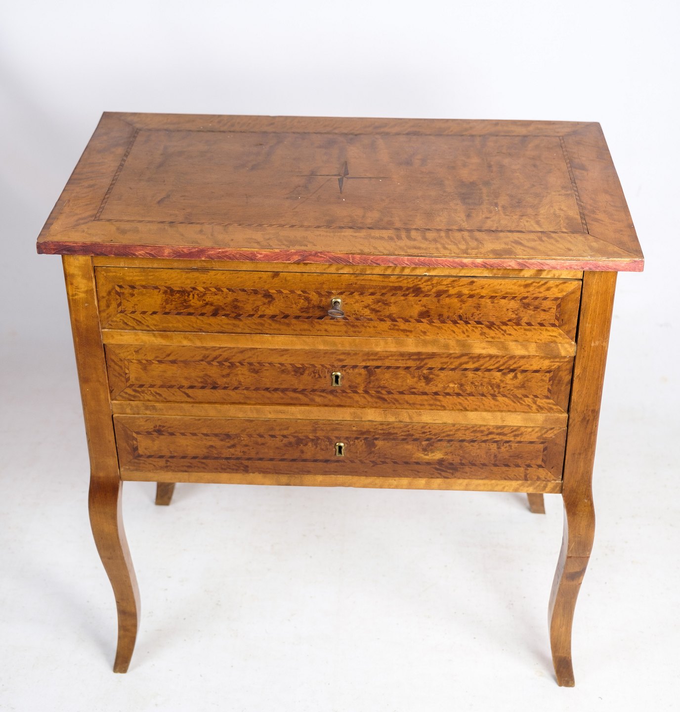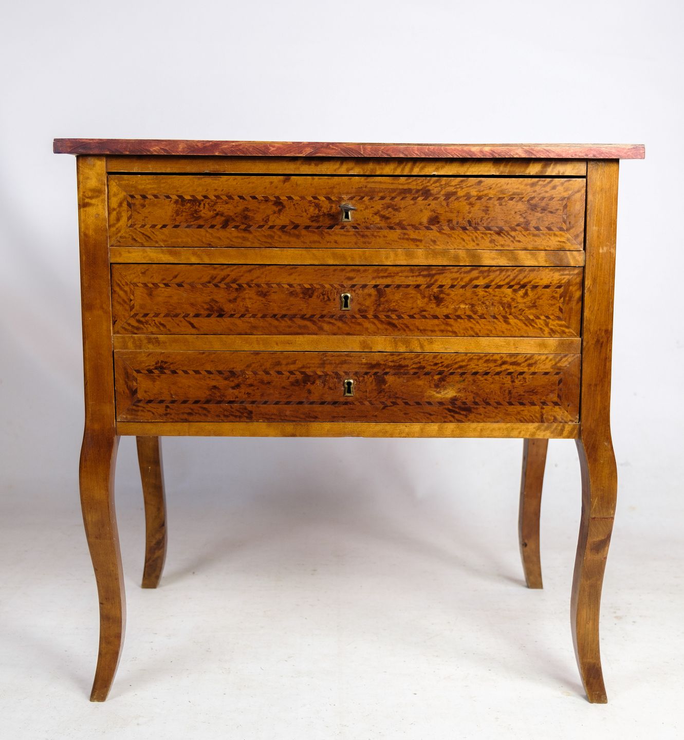 SolgtAntik kommode i rosentræ med intarsia og messing nøglehuller fra omkring 1920'erne. Nøgle medfølger.