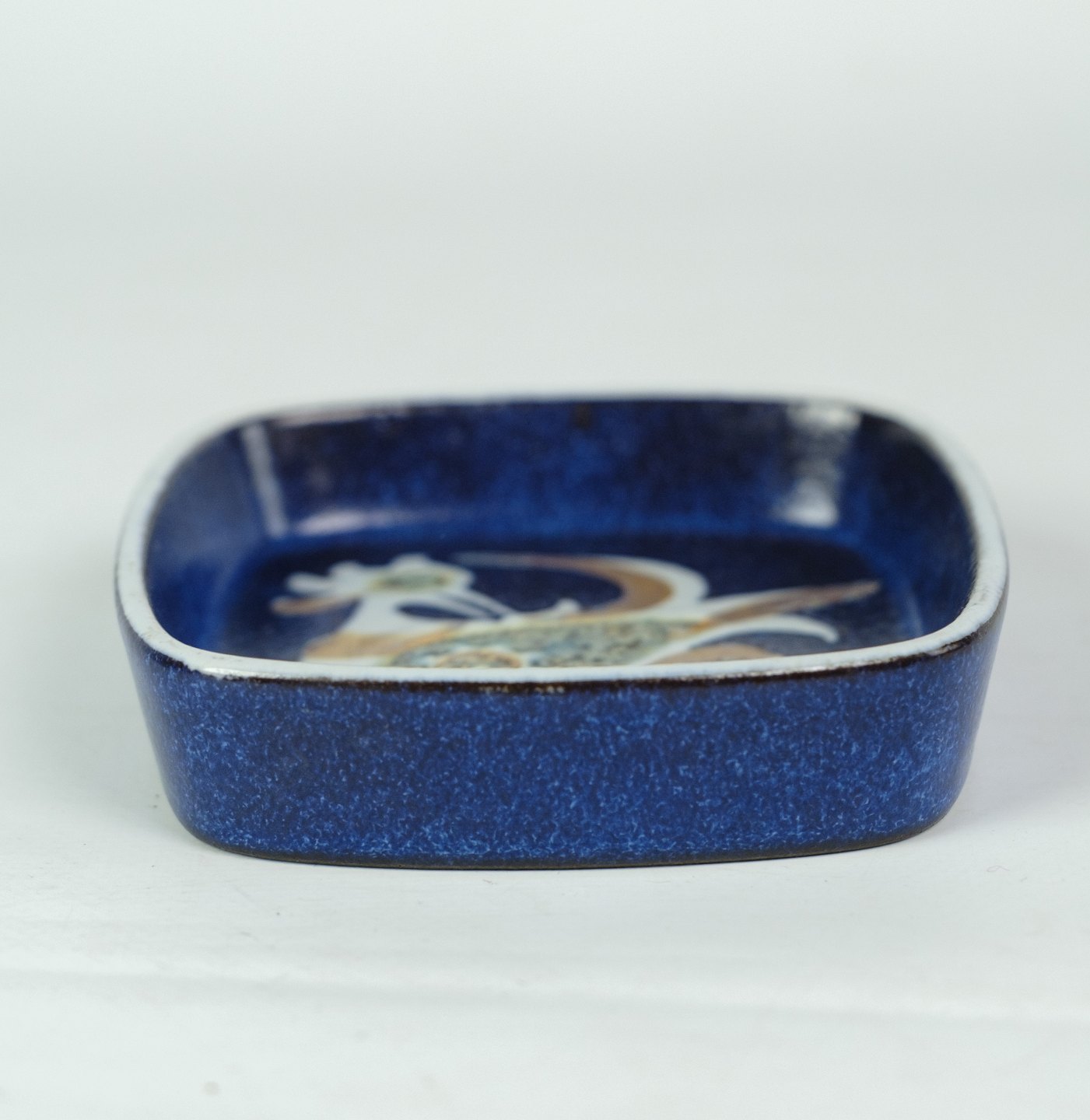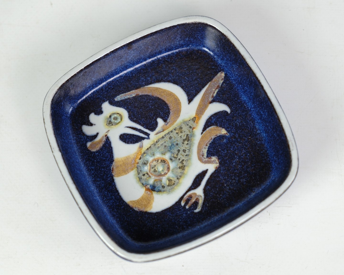 SoldSquare dish Aluminia art faience by Nils Thorsson no. 708 / 2882 with bird motif.