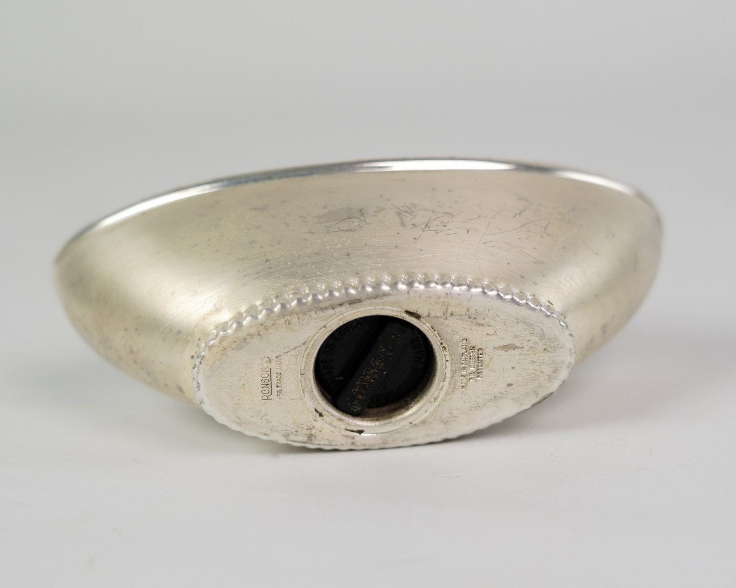 Table lighter, model Ronson made in metal originally from England engraved "Patented". With Reg trade mark.