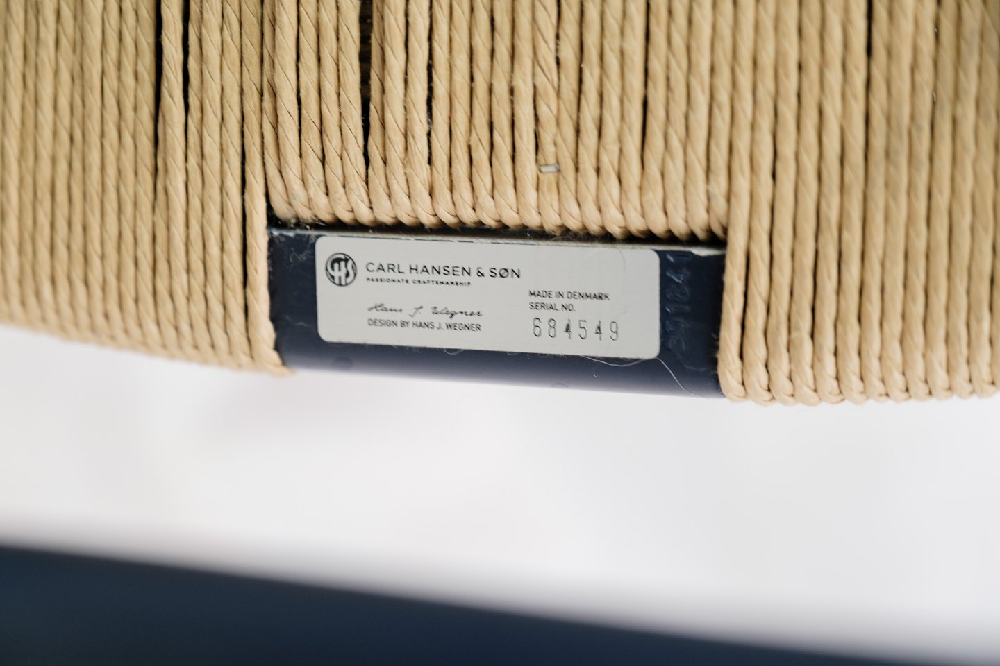 SolgtY stolen, model CH24, designet af Hans J. Wegner i en mørkeblå farve formgivet i 1950. Vi har 5 stk på lager
