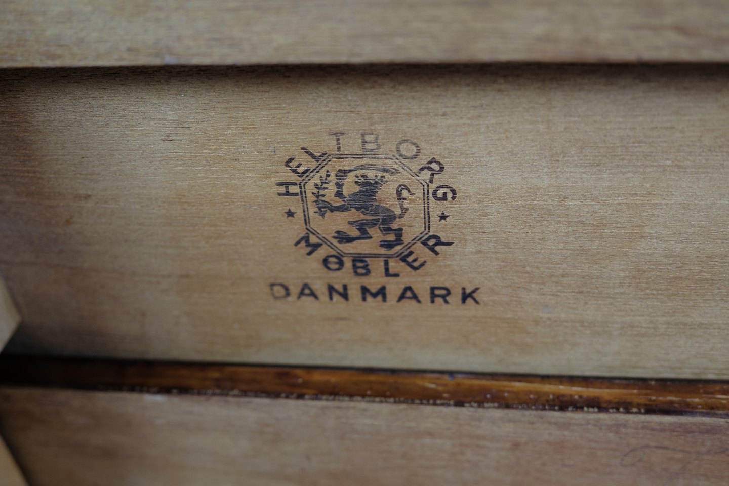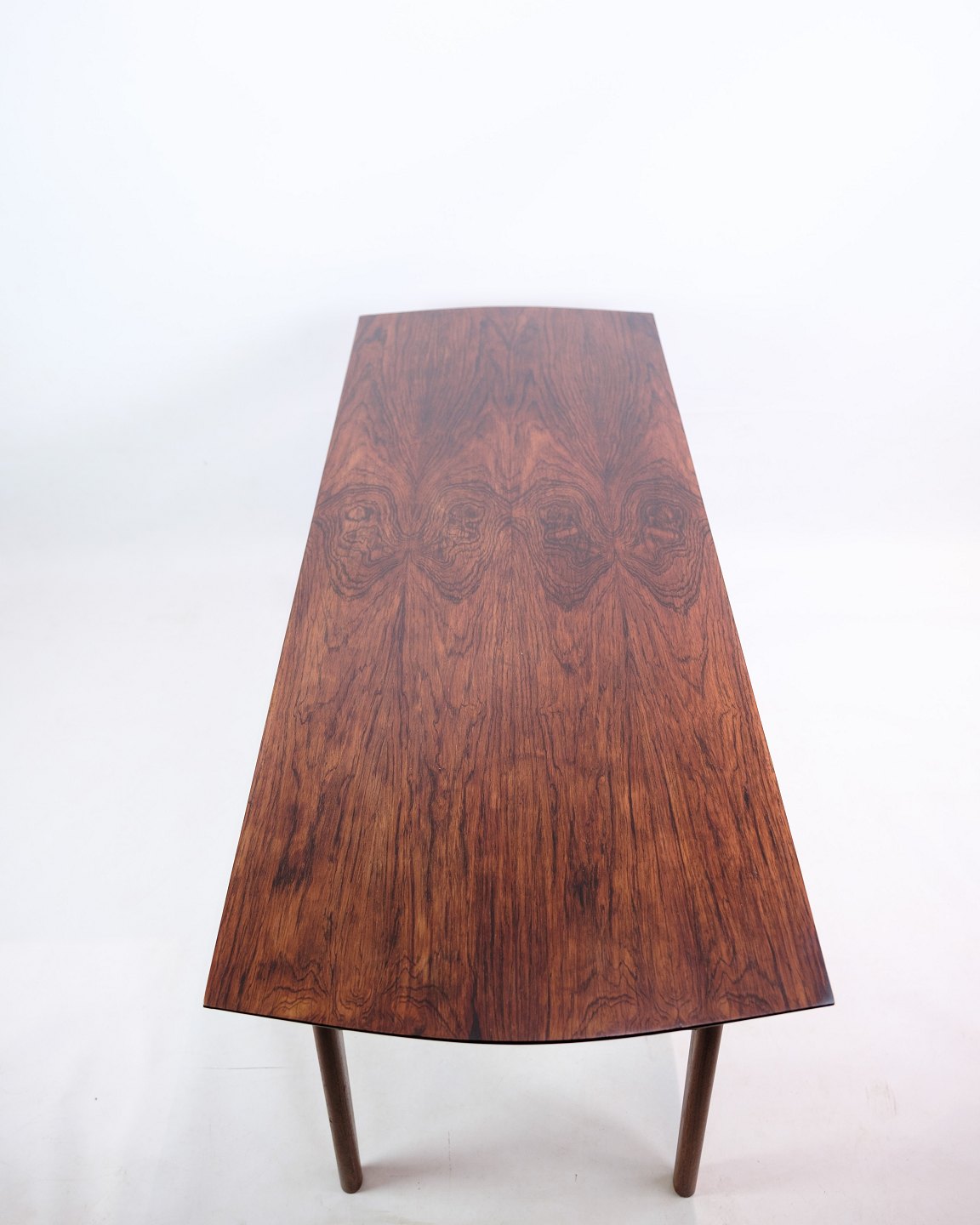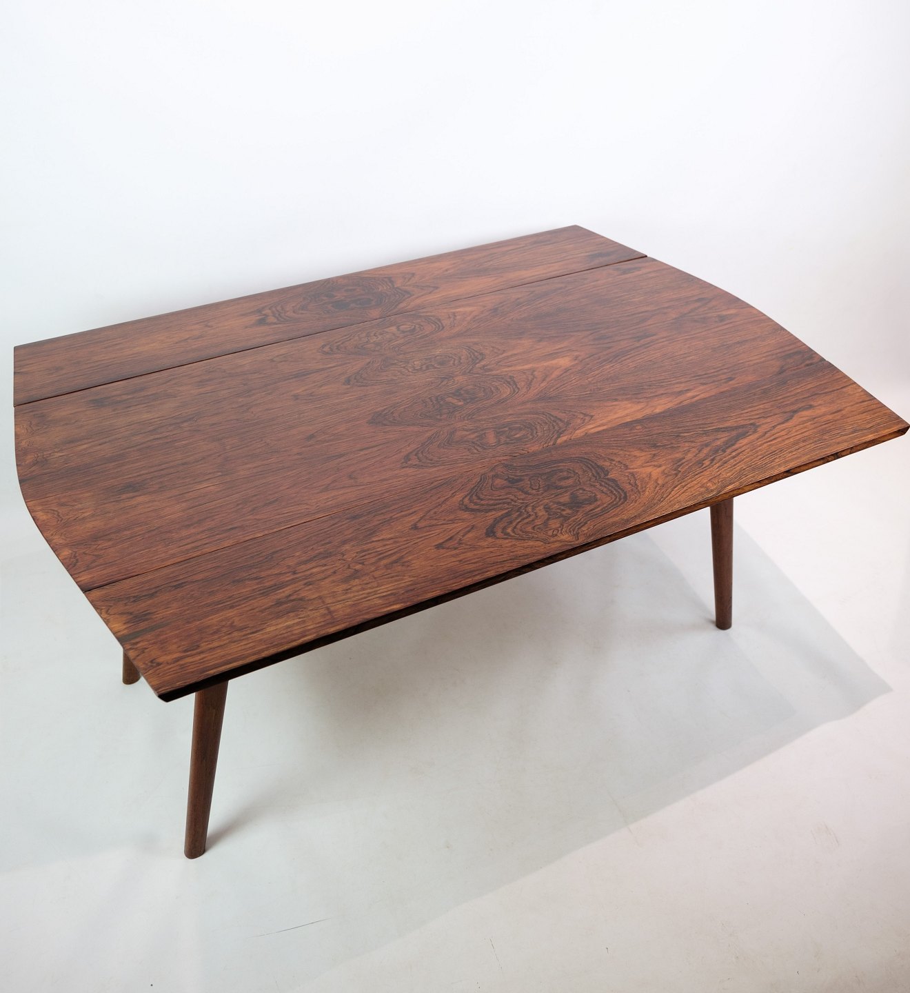 SoldCoffee table in rosewood by Heltborg Møbler Denmark with underlying wicker hearth from around the 1960s. The coffee table also has pull-out plates on each side, which make it 47 cm and 87 cm wide respectively.