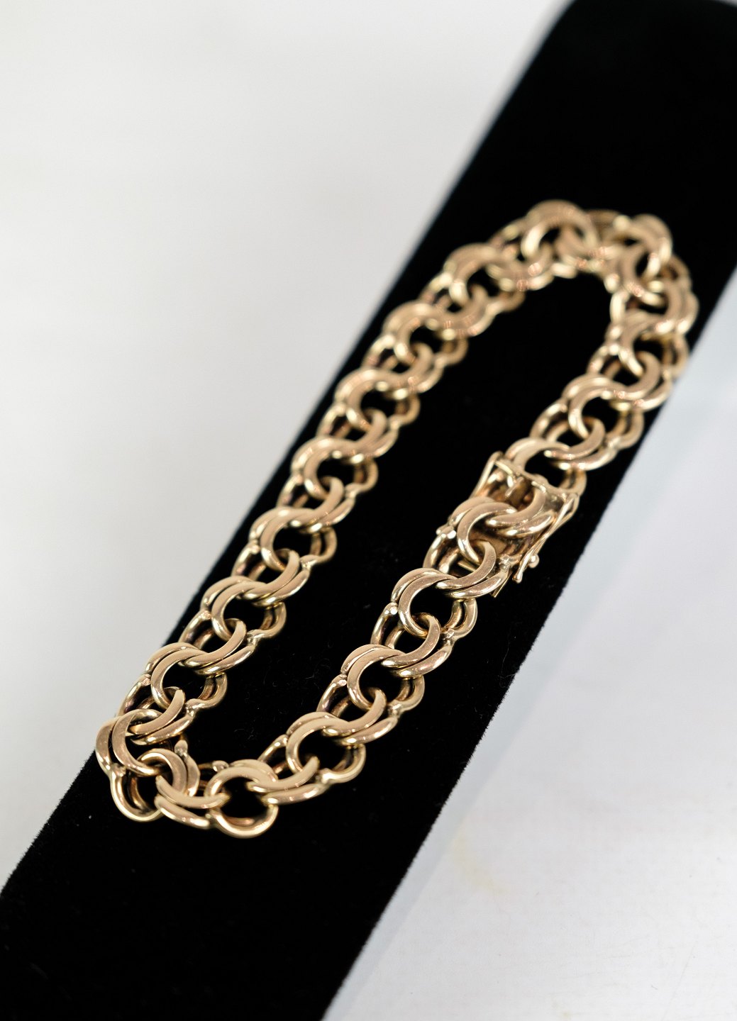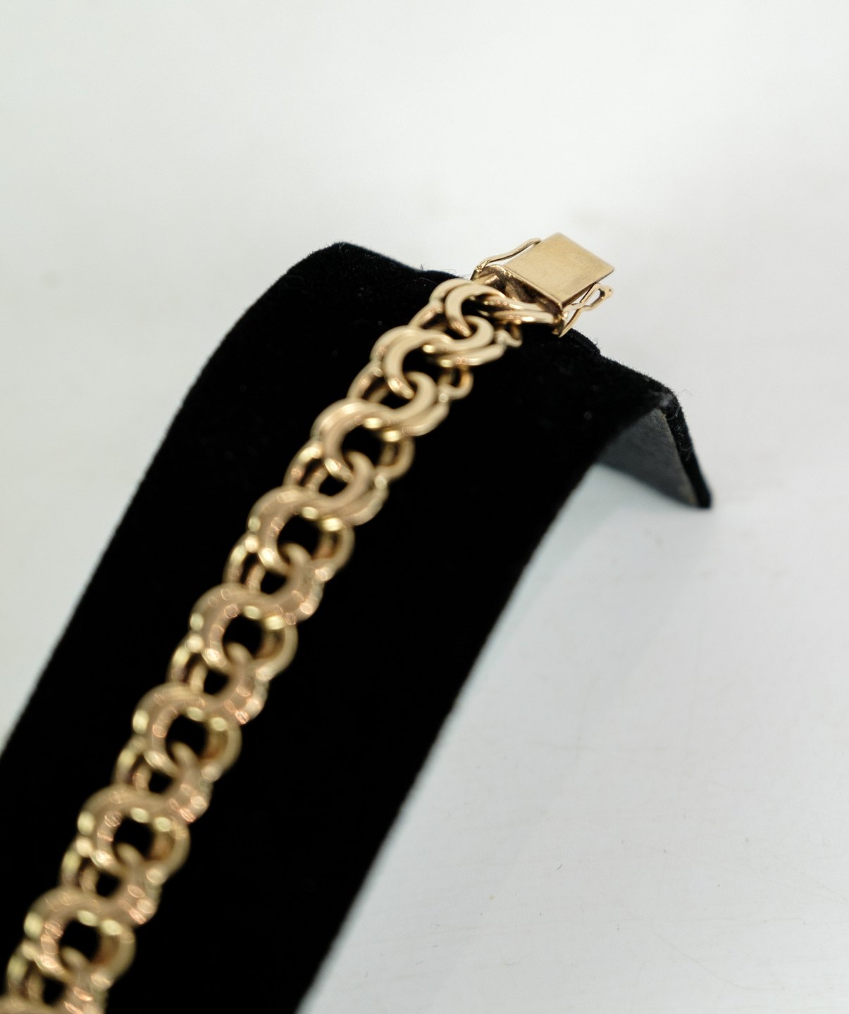 SoldBismark heavy arm jewelry / bracelet in 14 carat gold, stamped 14K 585 with box lock.