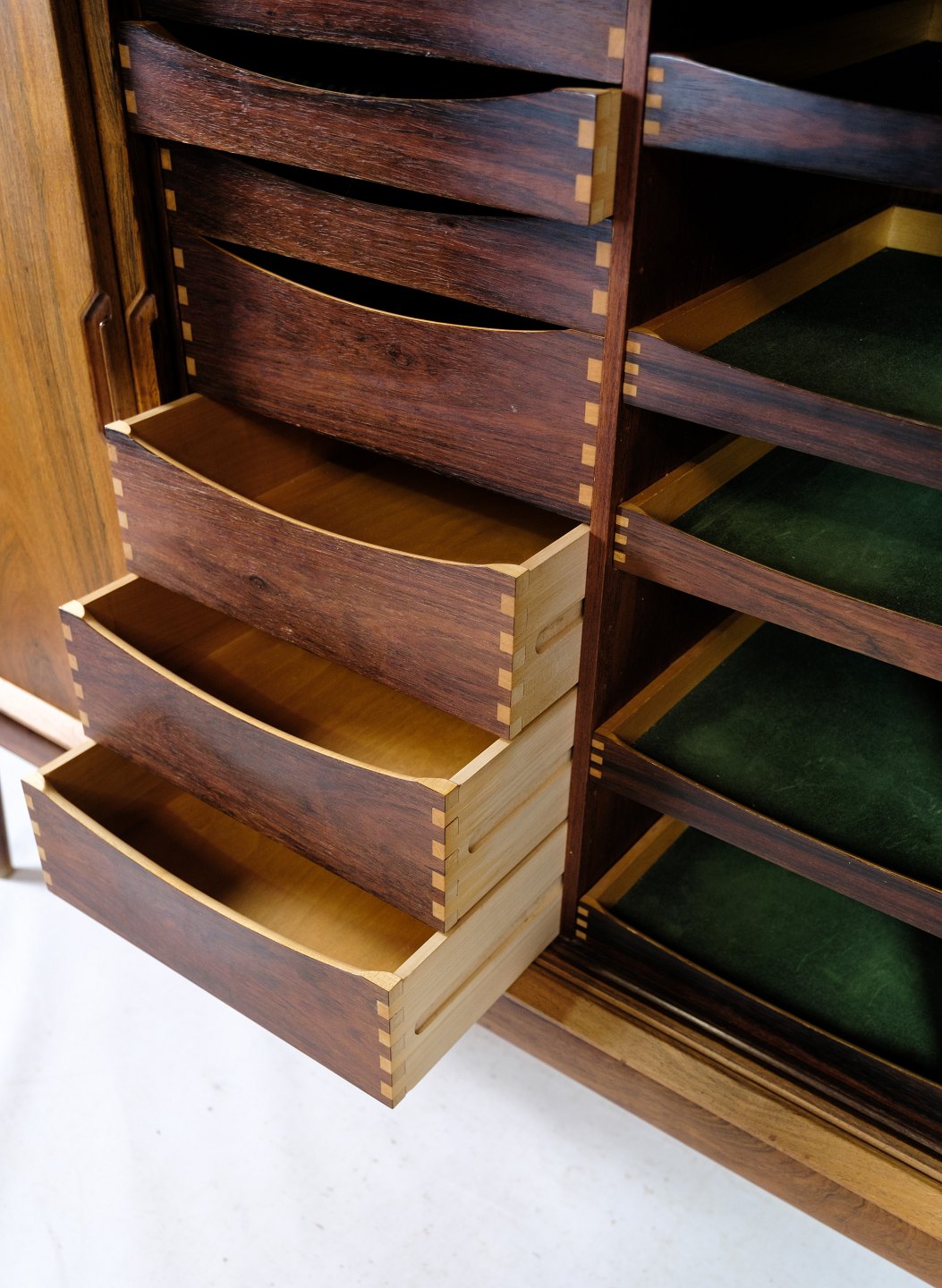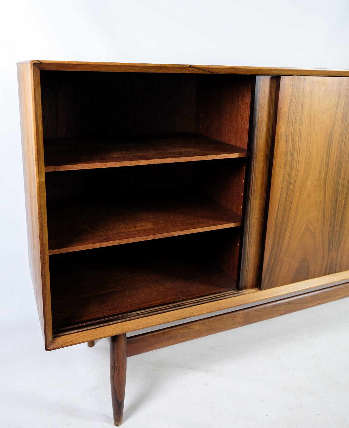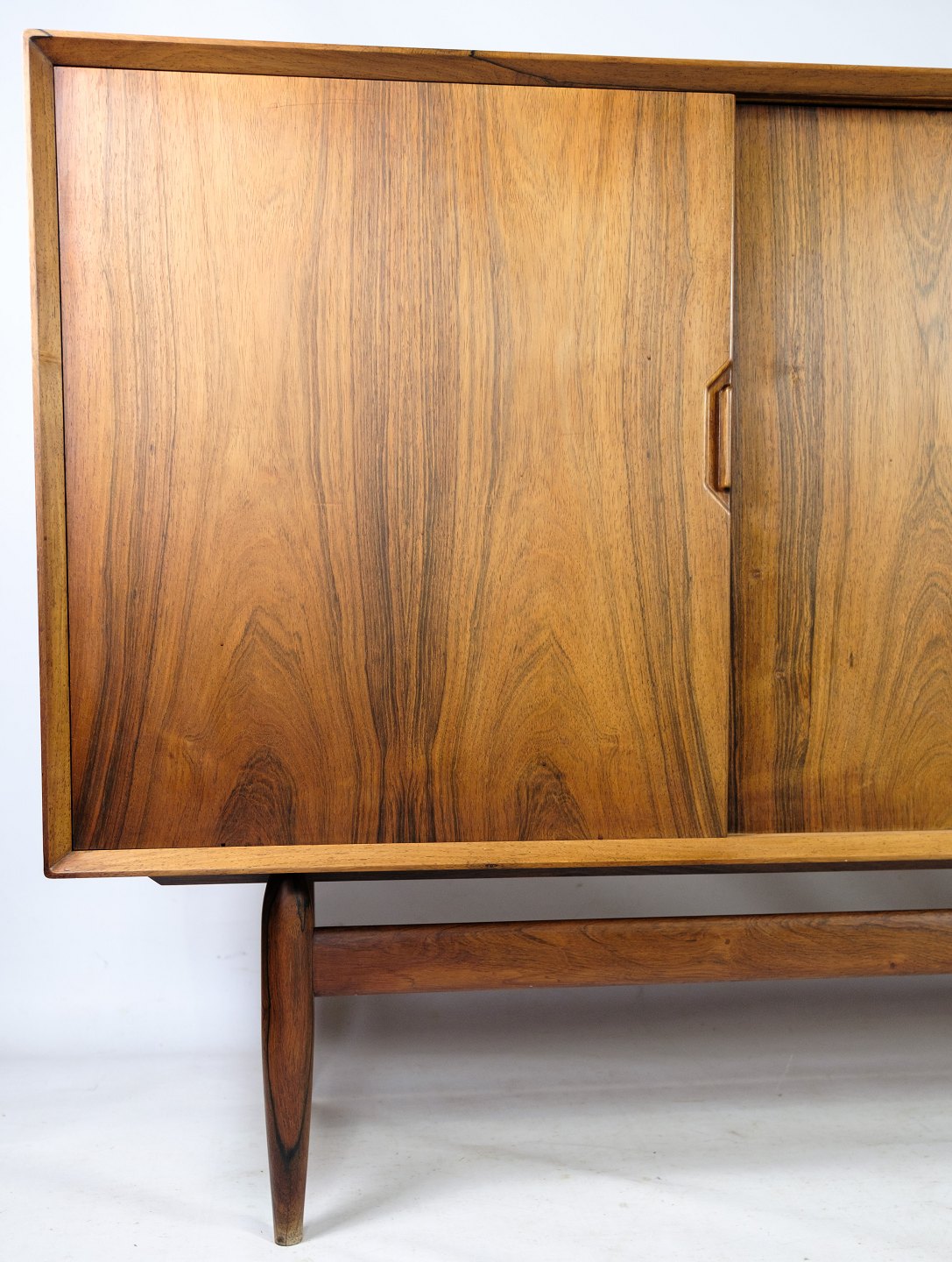 SoldThis tall sideboard in rosewood is a magnificent example of Danish furniture design from the 1960s. The beautiful rosewood, which is known for its rich color and unique seasonal patterns, gives the sideboard a warm and inviting radiance. Every detail is carefully executed, which reflects the high quality and fine craftsmanship that characterizes Danish design at this time.