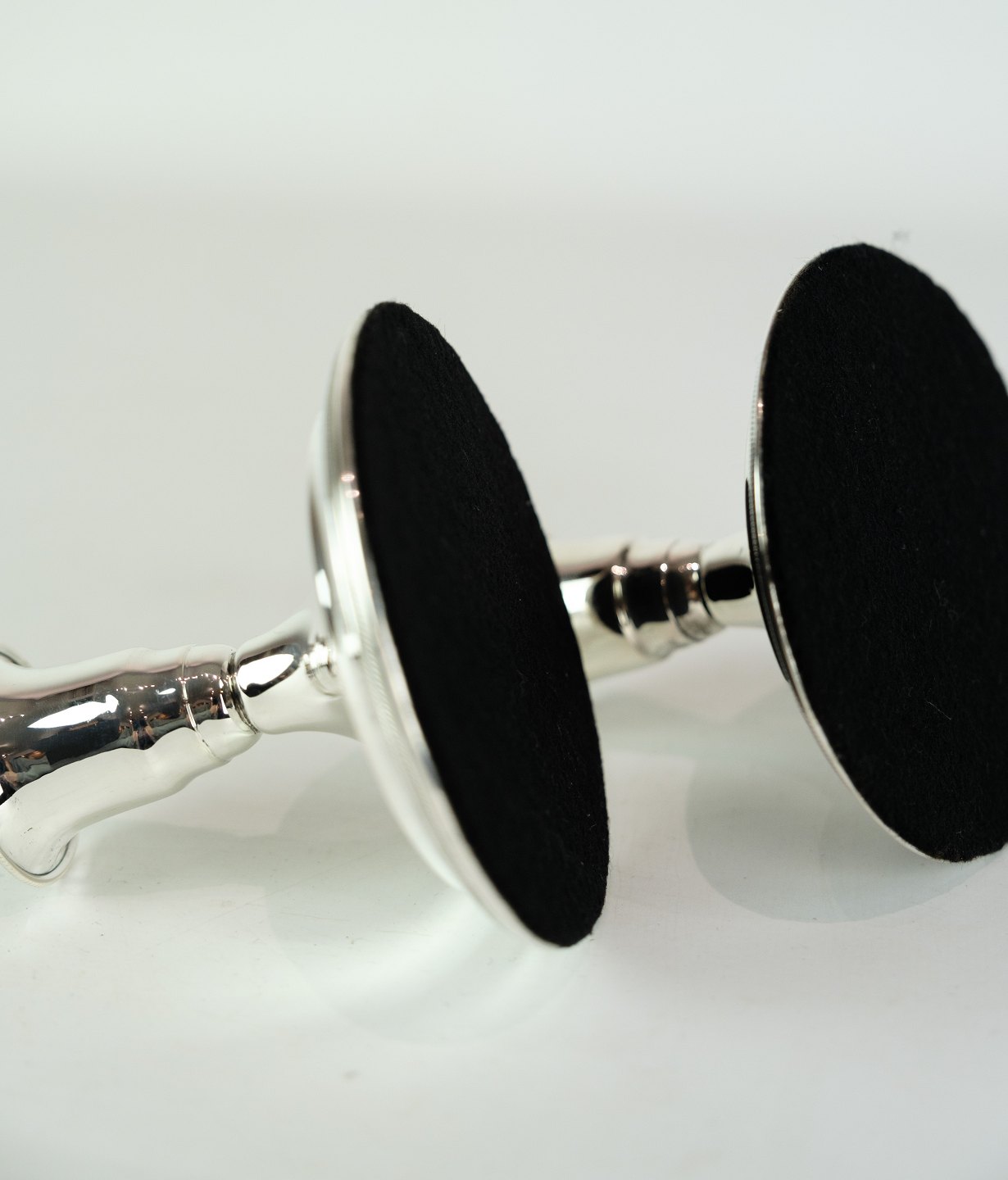Low silver candlesticks made by silversmith Sven Toksværd in the material silver 830 sterling from around the 1930s.