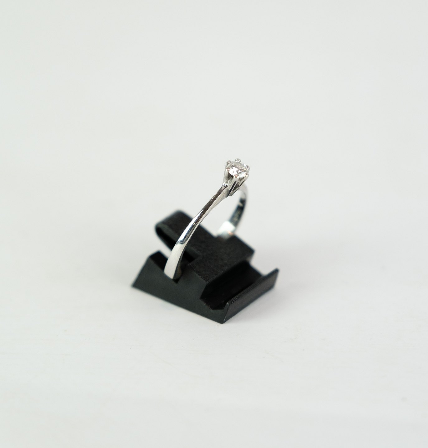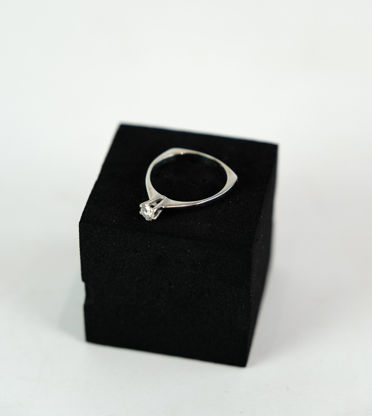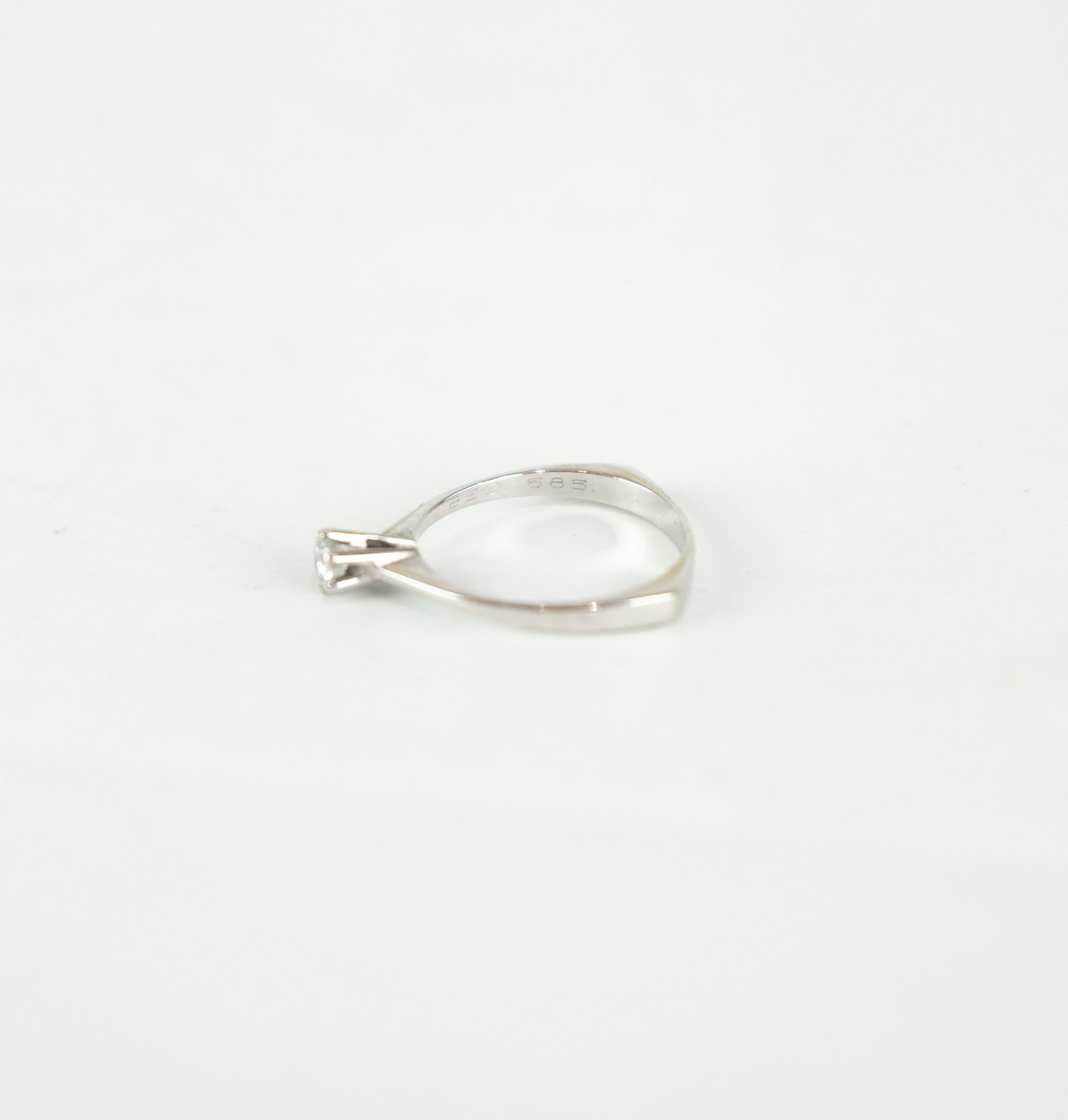 Princess / solitaire ring in 14k white gold, stamped "BEC" 585 with a 0.25 carat diamond.