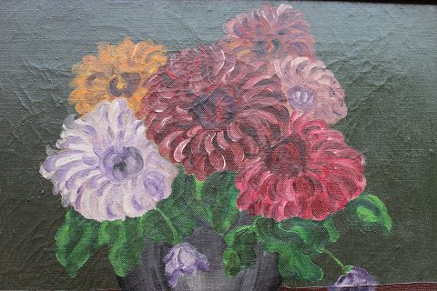 Painting of a beautiful bouquet of flowers in a vase, Signed KJ.