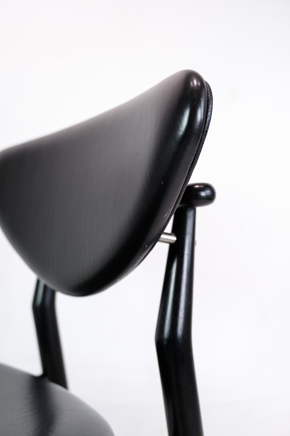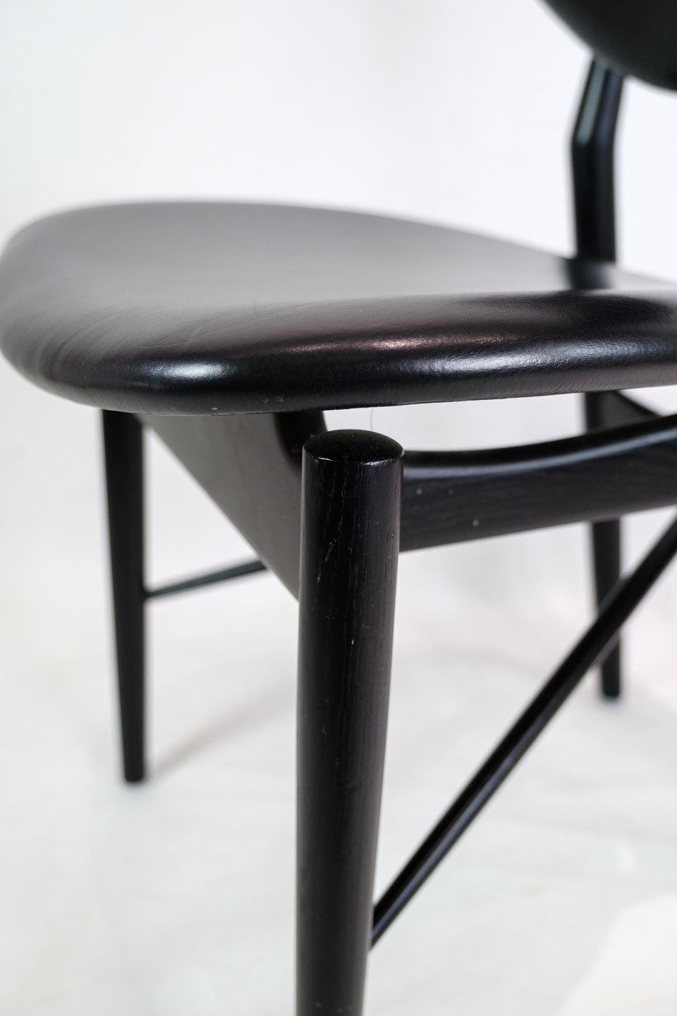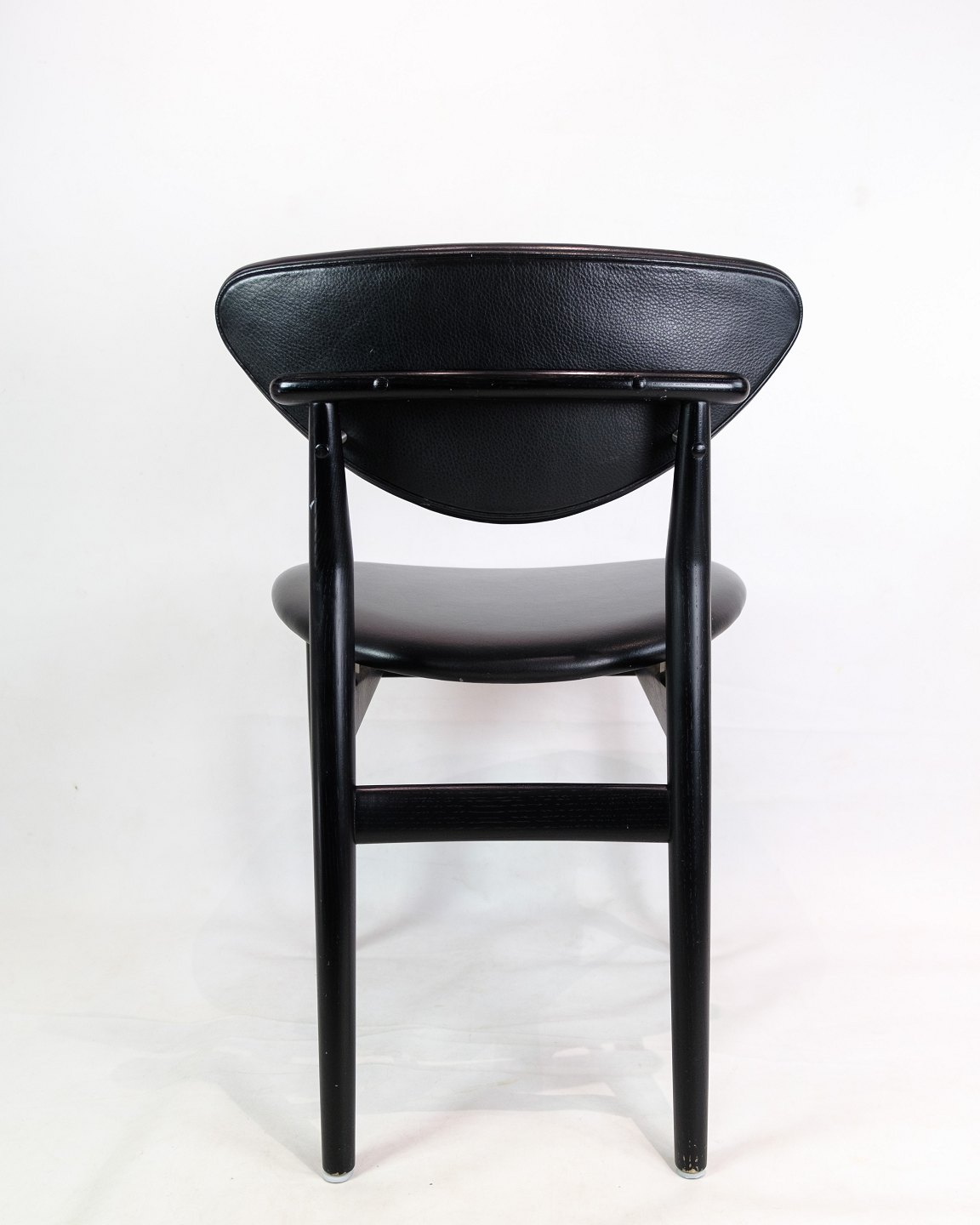 Model 108 Chair, a masterpiece of furniture design created by Finn Juhl, made of black painted oak and upholstered in black Elegance leather of the highest quality from the House of Finn Juhl.