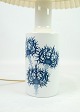 Lampens base er lavet af porcelæn i en smuk, blå farve med en let tekstureret overflade. Basen har en cylindrisk form med en let indsnævret talje, hvilket giver et elegant og slankt udseende.