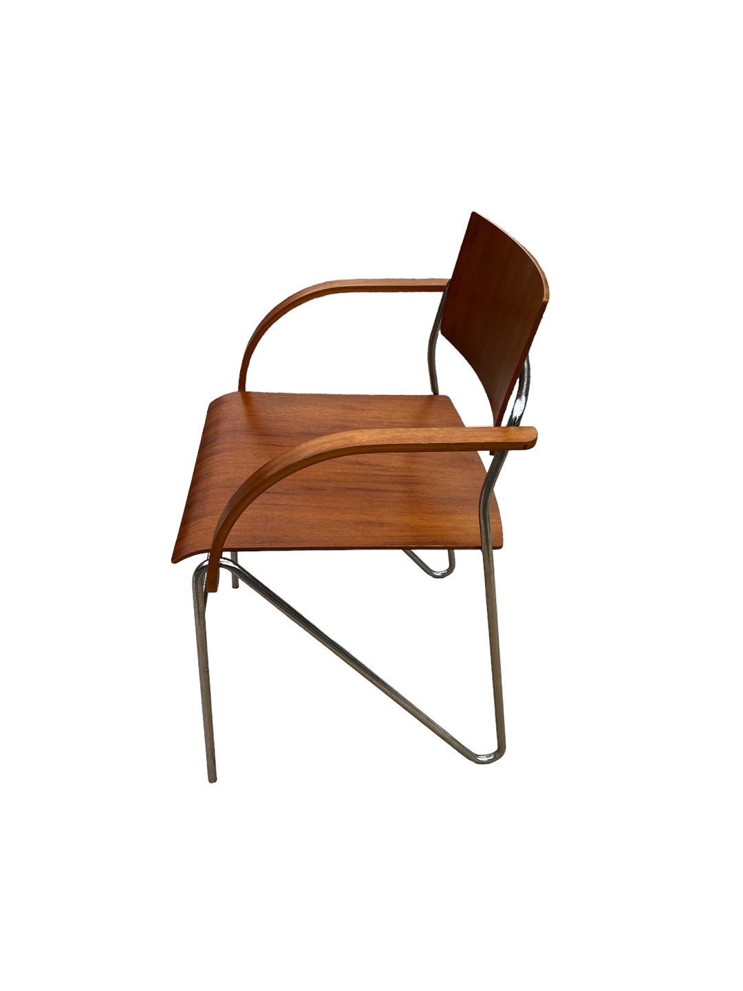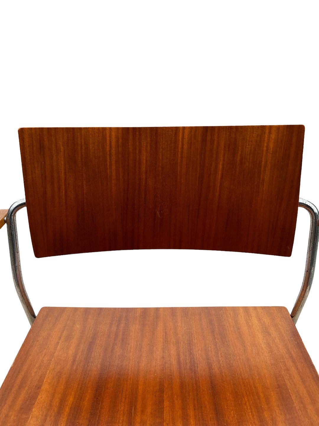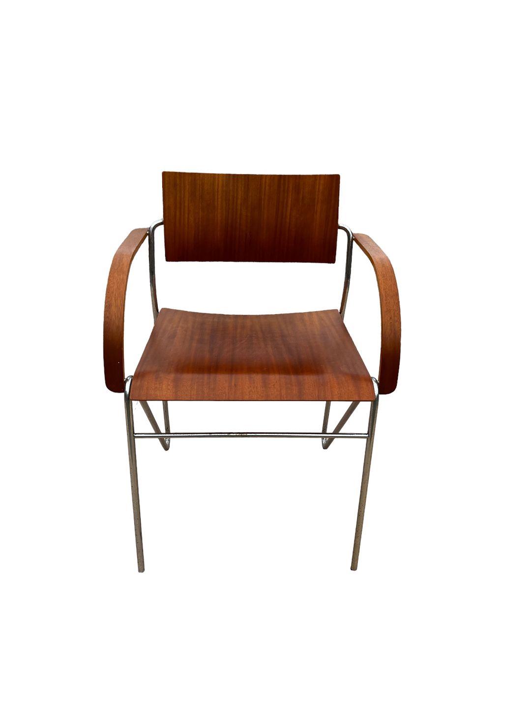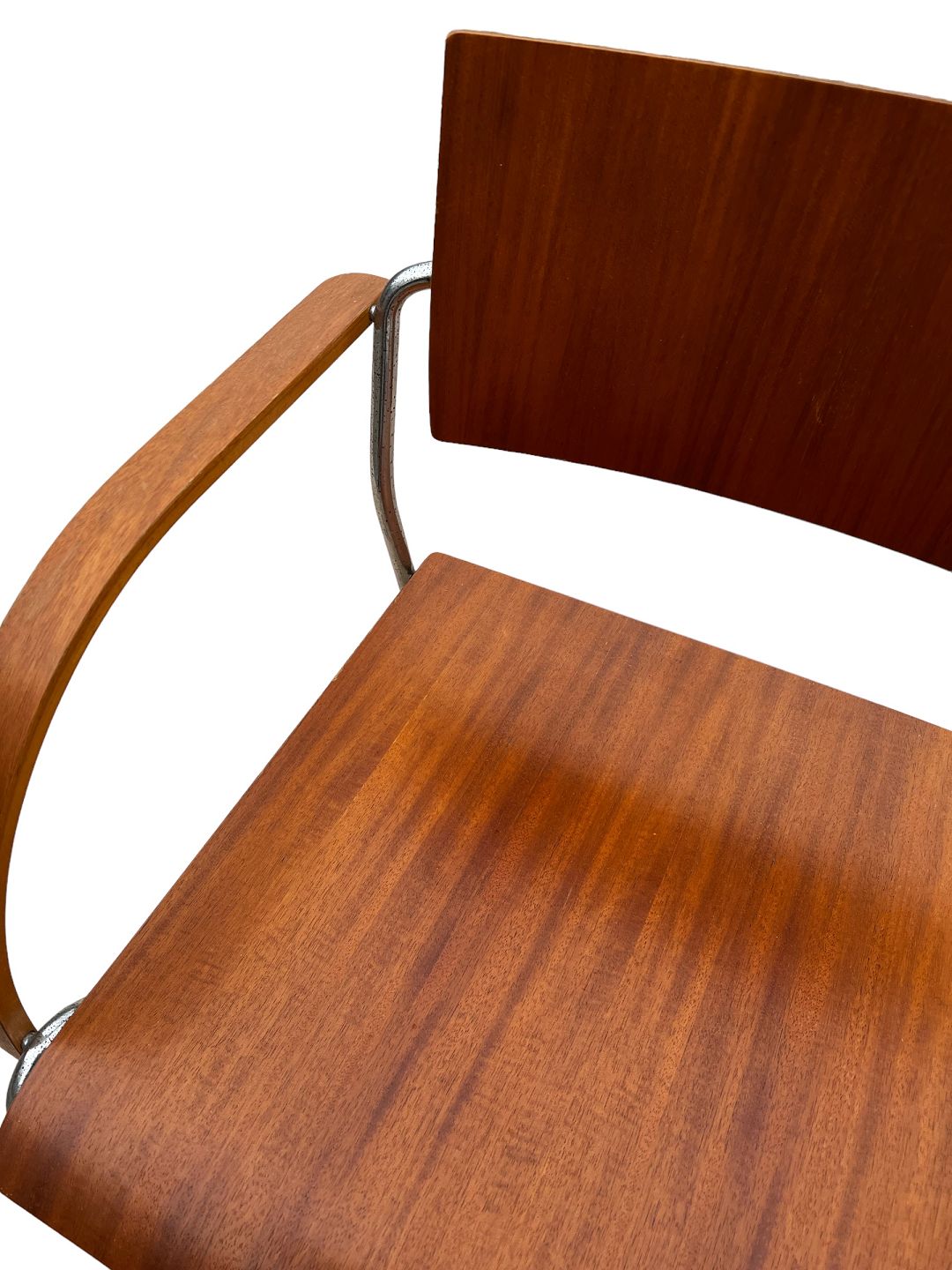 Set of six dining chairs, designed by Alfred Homann (1948-2022) in mahogany wood with chrome legs from 1992 with original label from Danish Furniture makers - quality control.