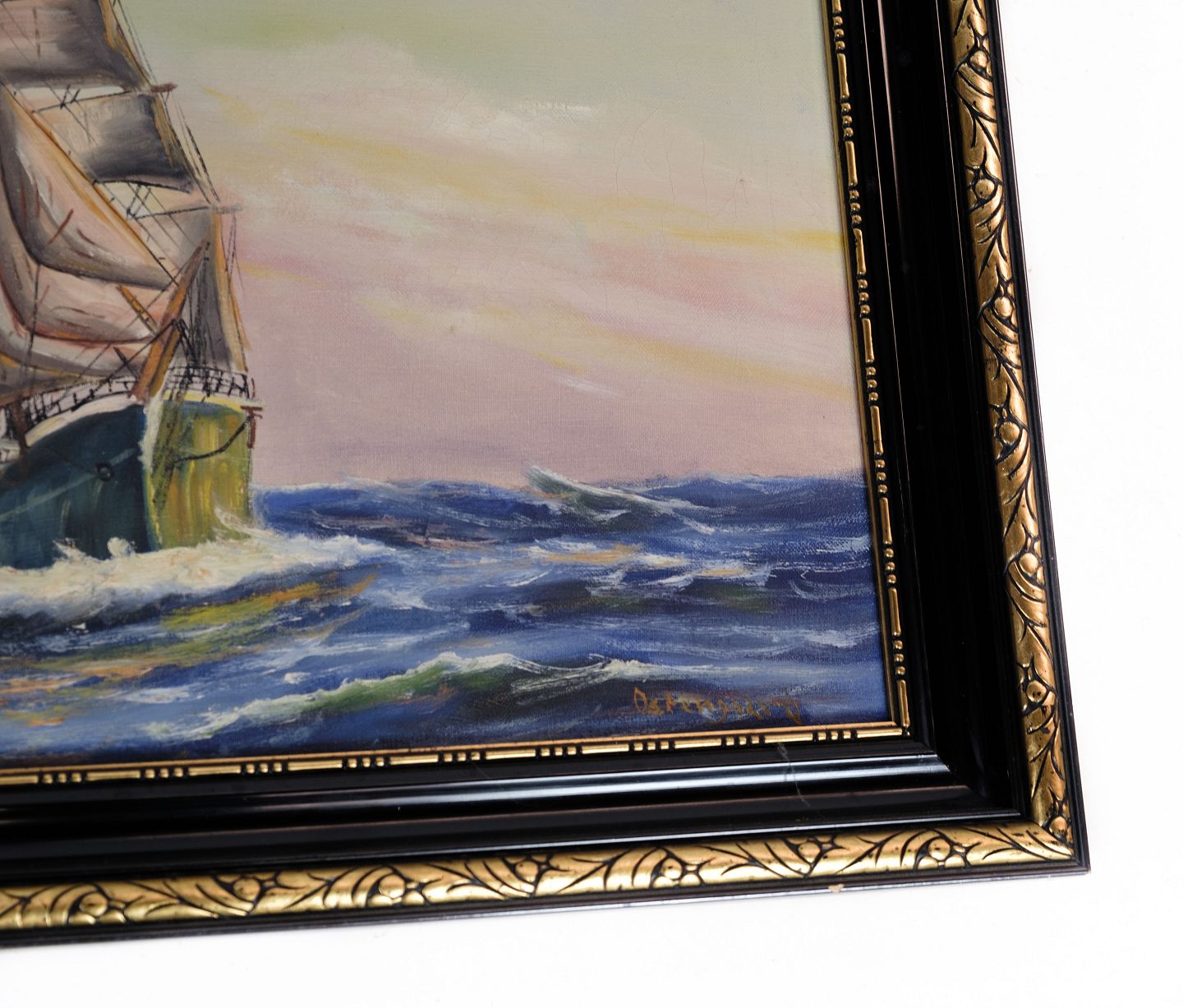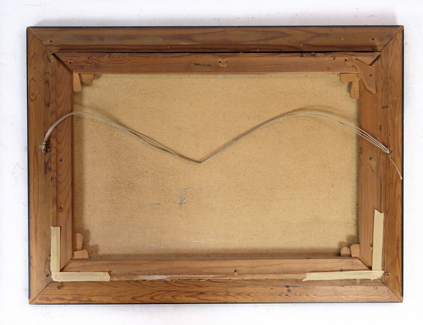 Oil painting with marine motif and with black frame from around 1890. Signed