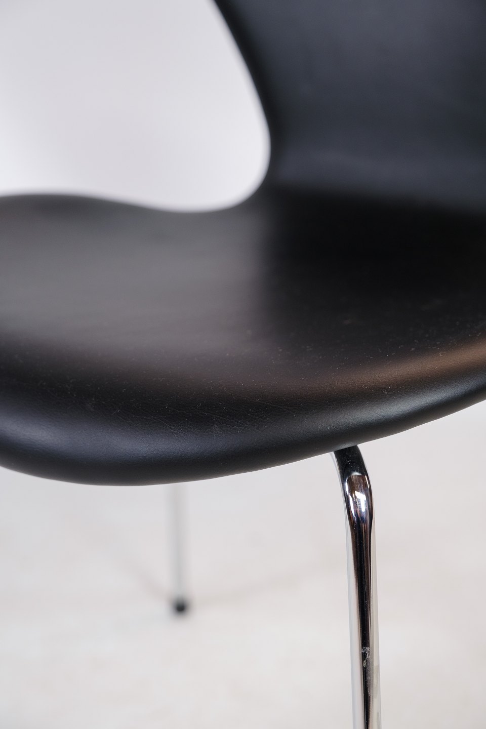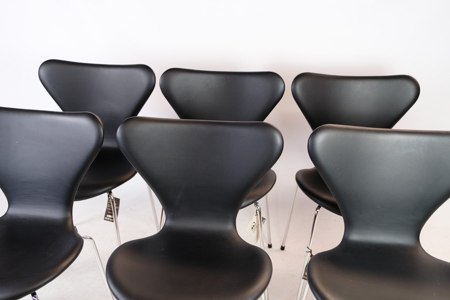 Stolene er fra 2020 med originale labels black grace leather, som er et højkvalitets og slidstærkt materiale. Det sorte læder giver stolene et slankt og sofistikeret look, der komplementerer deres enkle og elegante design.