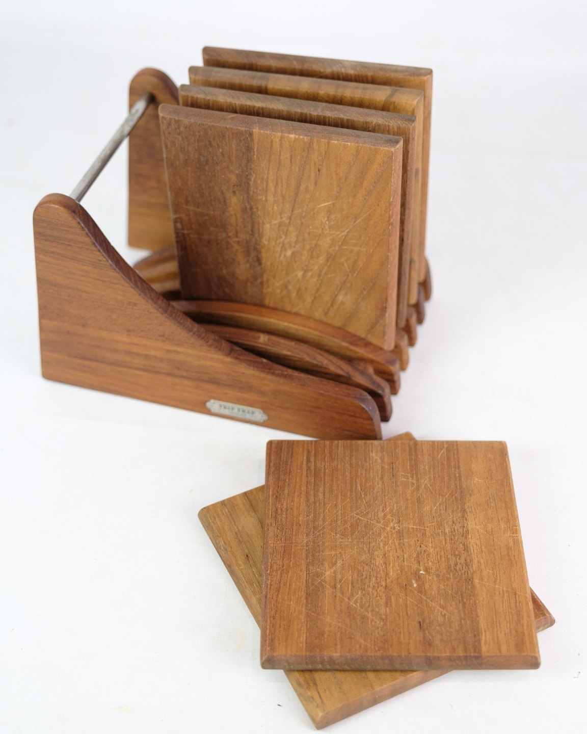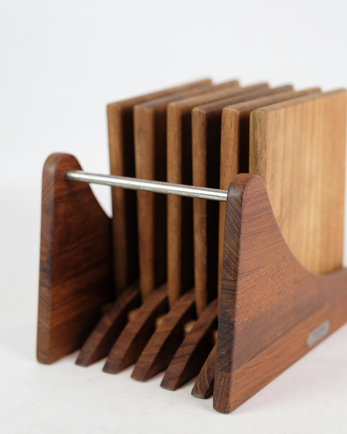 Set of six cutting boards with holders in teak wood by Trip Trap Denmark from around the 1960s.