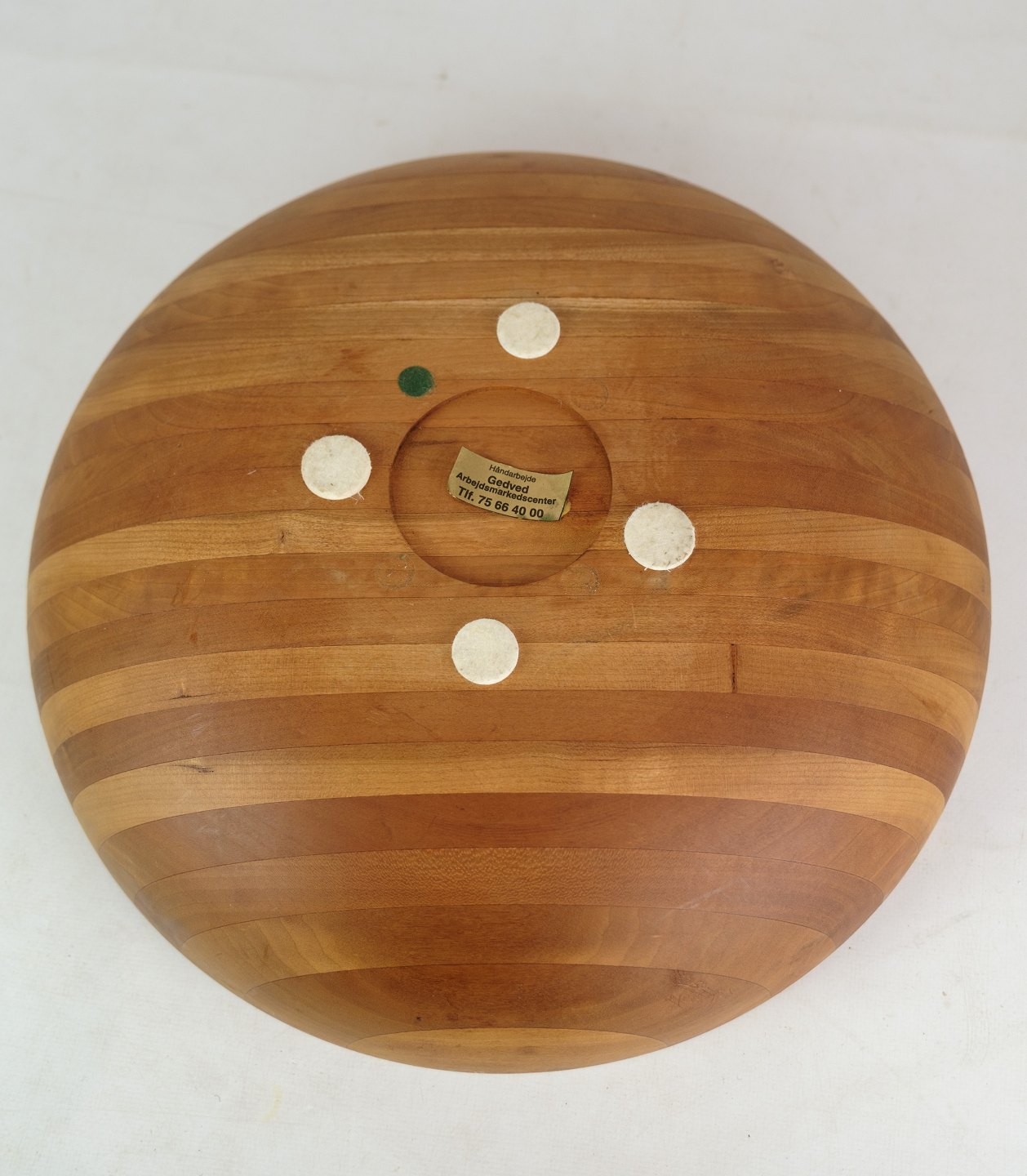 Stor skål udført i kirsebær træ af dansk design fremstillet af Gedved Arbejdsmarkedscenter fra omkring 1960'erne.